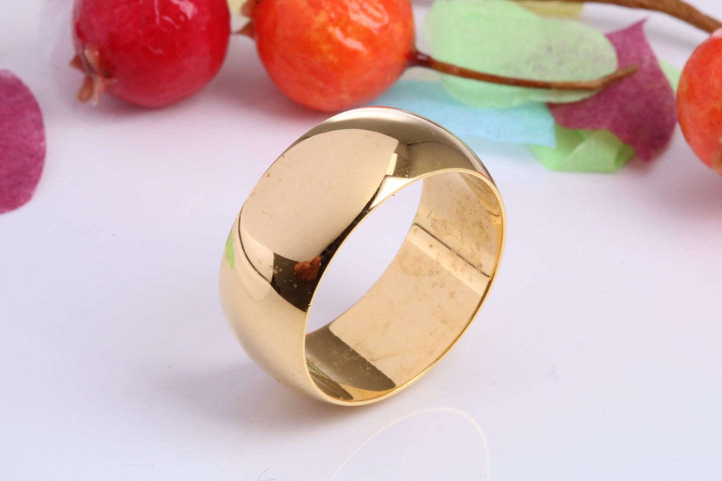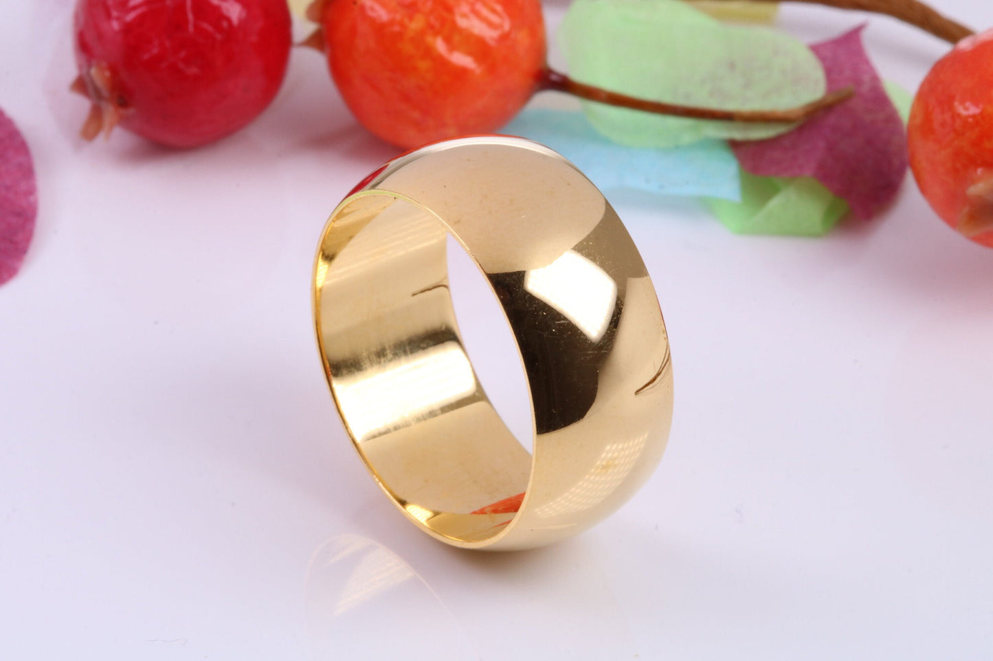 10 mm wide Simple Band, D Profile, Made from Solid Silver and Further 18ct Yellow Gold Plated