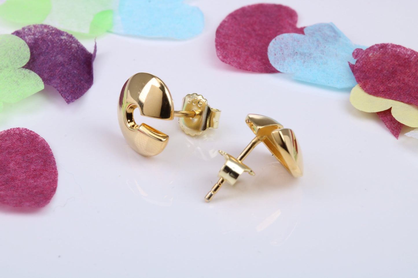 11 mm Round 18ct Yellow Gold Plated Stud Earrings, Made from Solid 925 Grade Sterling Silver