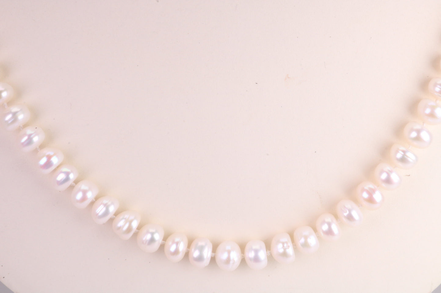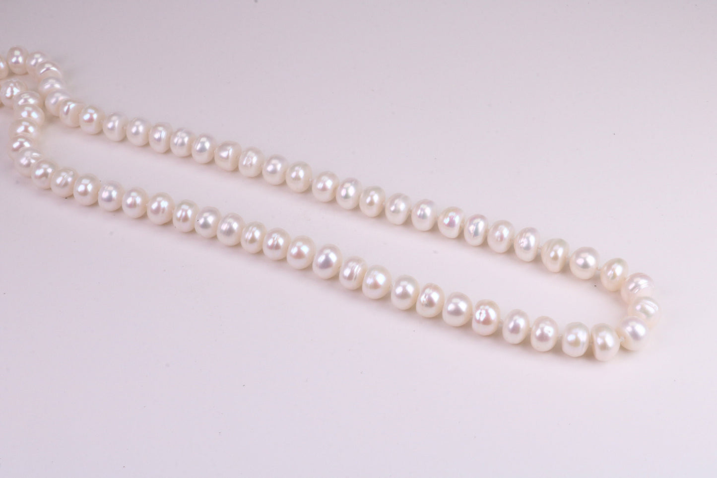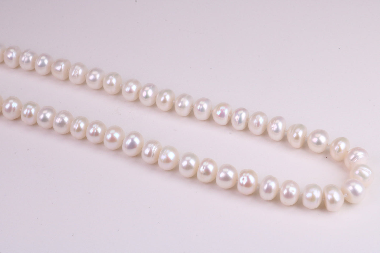18 Inches Long Natural Pearl Necklace set in Solid Silver Clasp, 6.50 mm Round Pearls