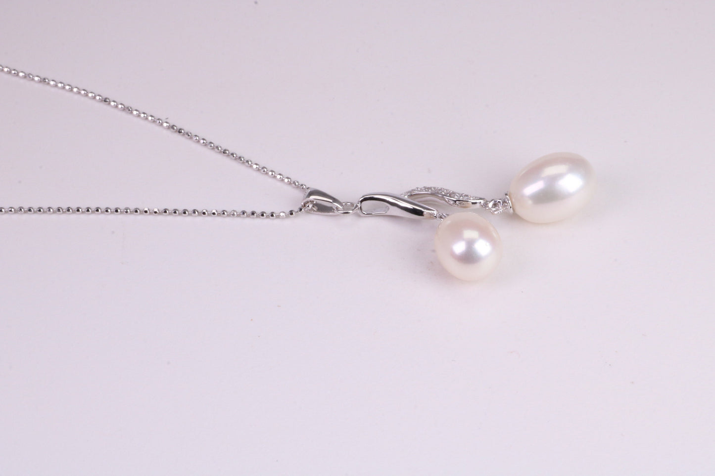 20 Inches Long Natural Pearl Necklace set in Solid Silver, Length Adjustable Chain