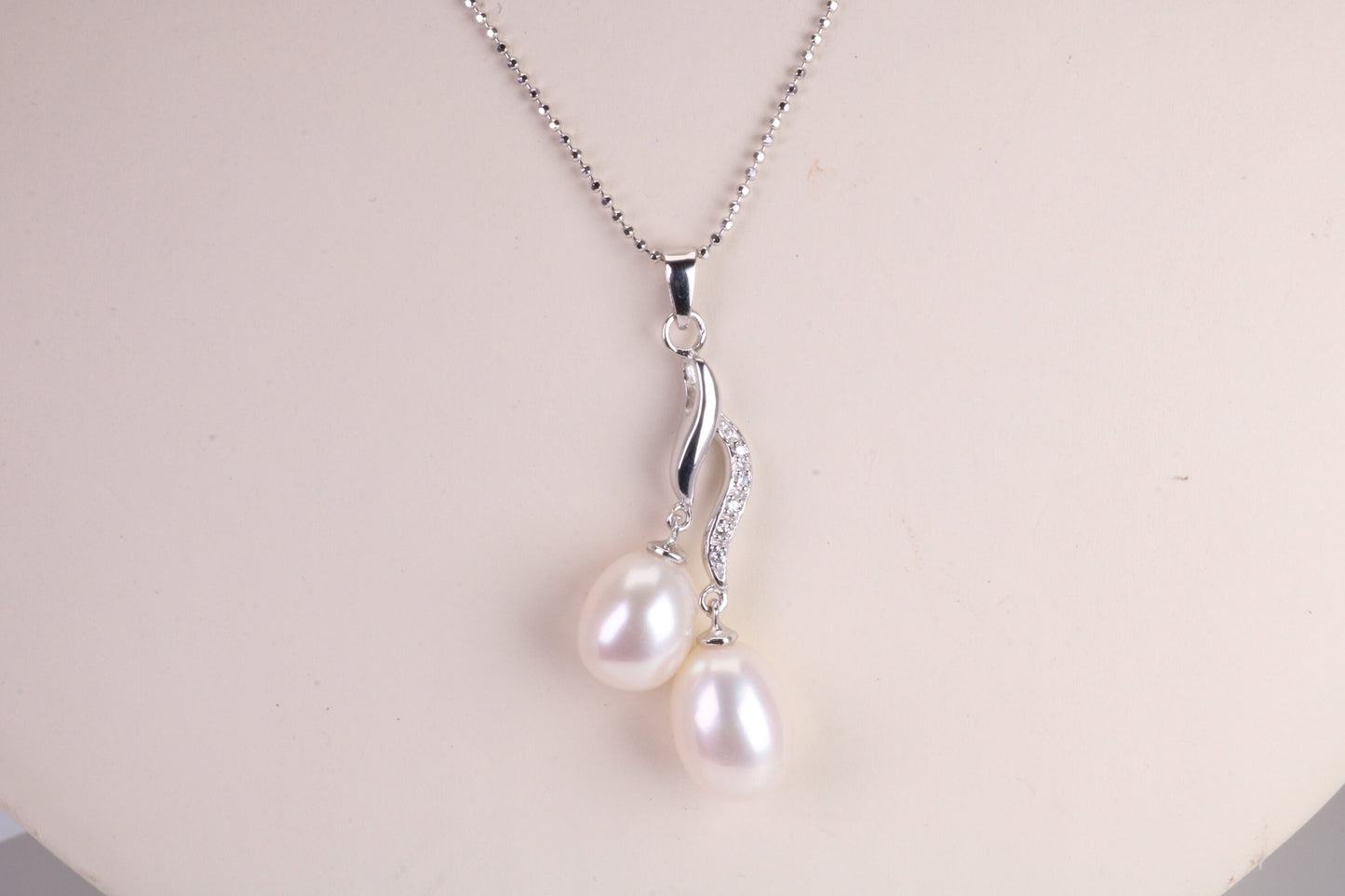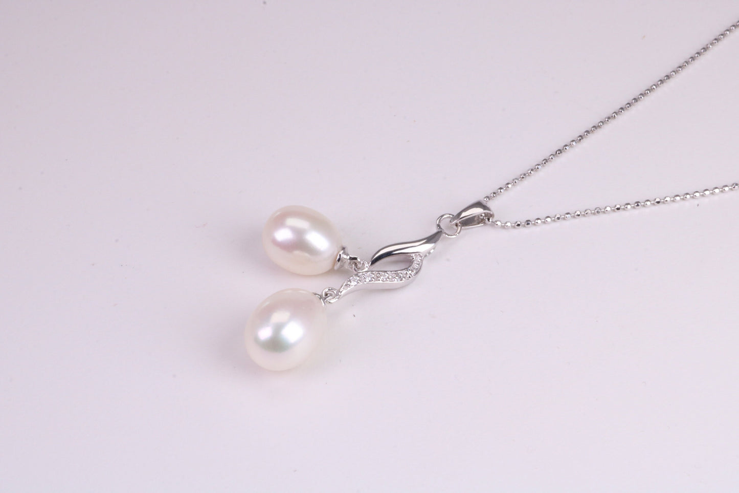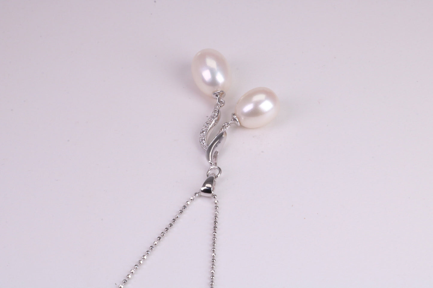 Diamond White Cubic Zirconia set Pendant measures 40 mm Long including the Pearls drop