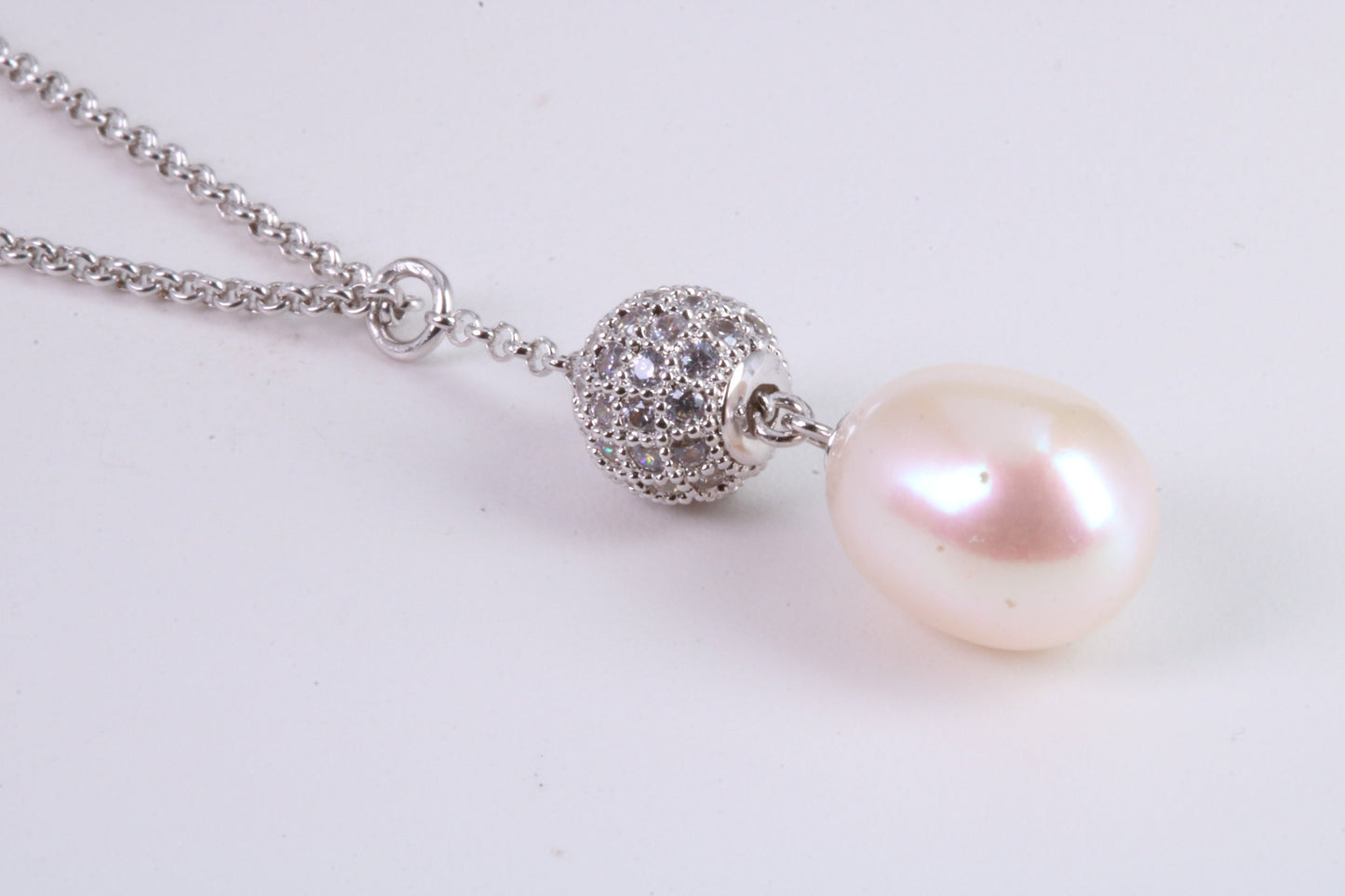 20 Inches Long Natural Pearl Necklace set in Solid Silver, Length Adjustable Chain