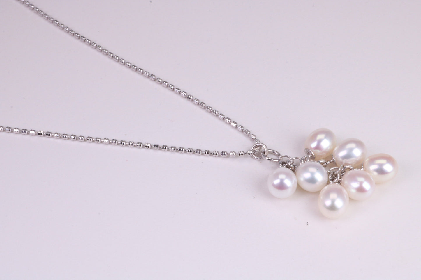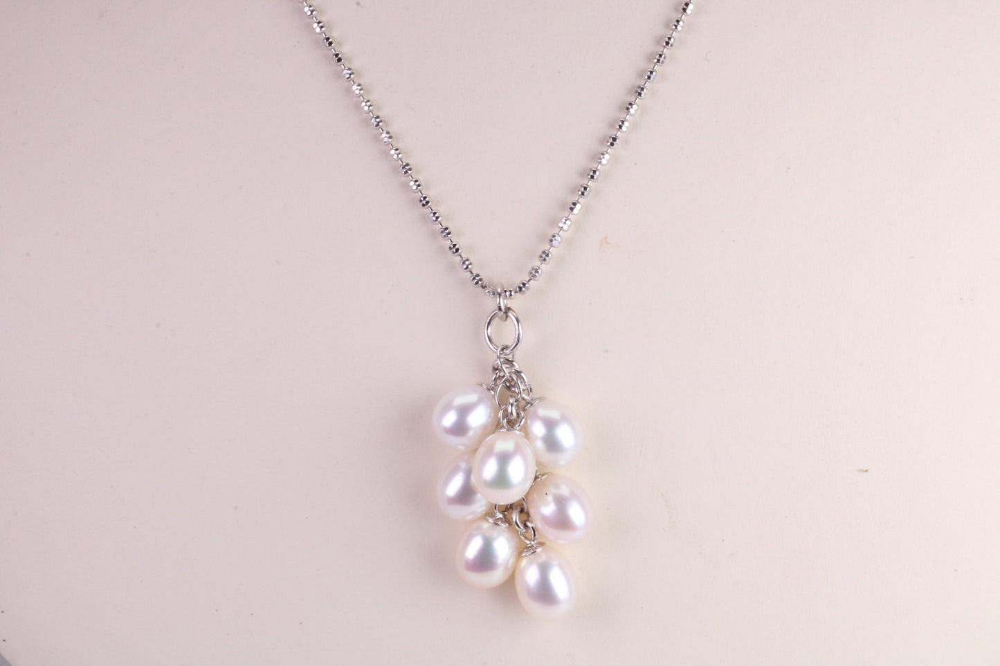 20 Inches Long Natural Pearl Necklace set in Solid Silver, 7 Natural Pearls Bunched Together