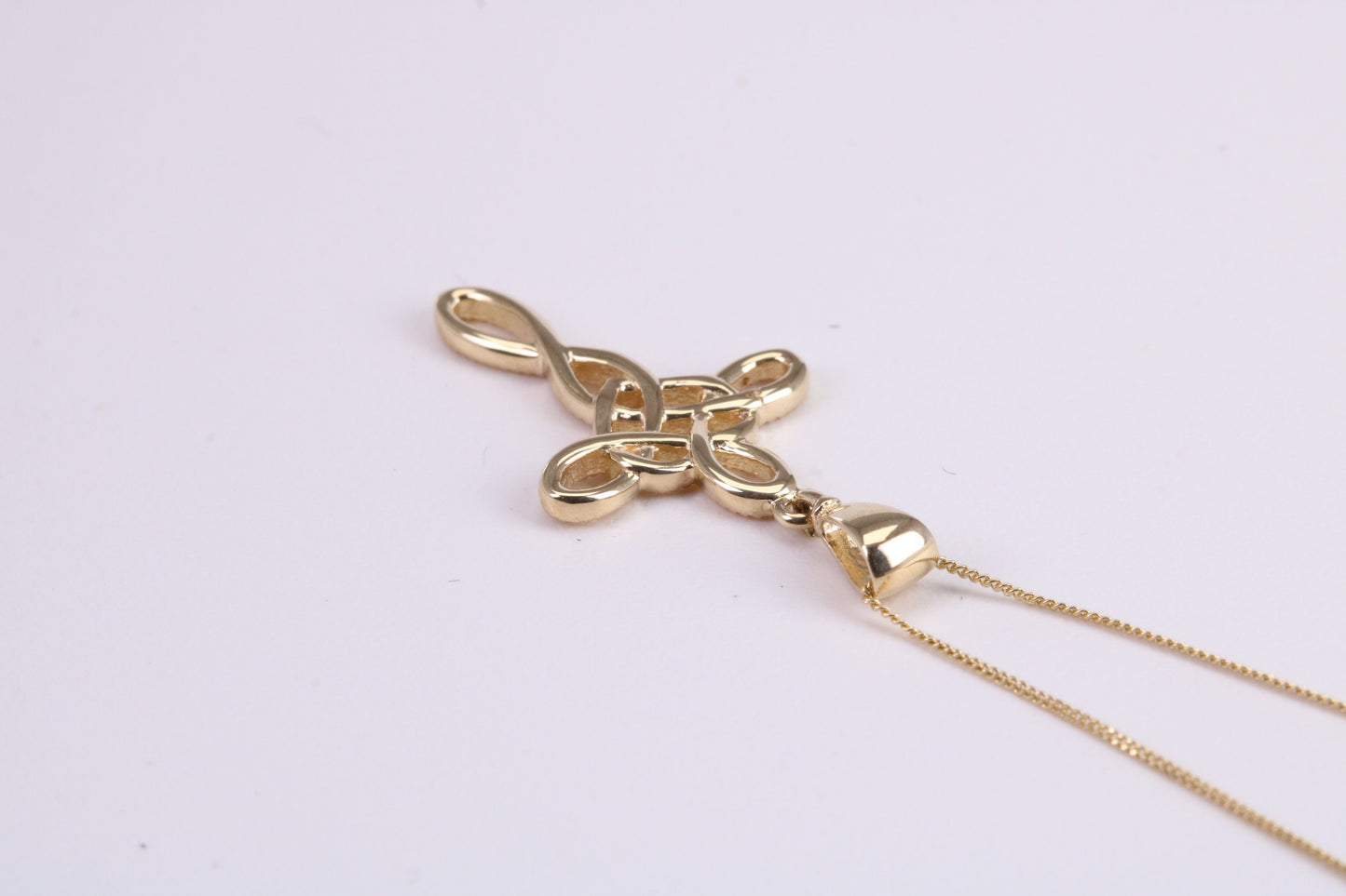 21 mm Long Cross Together with 16 Inch Long Chain, Made from Solid Yellow Gold with High Polished Finish