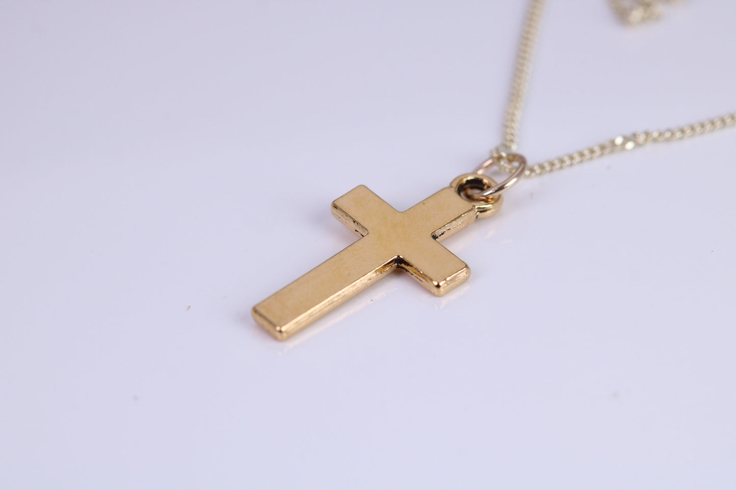 24 mm Long Cross Necklace, Made from Solid Cast Yellow Gold with High Polished Finish, British Hallmarked