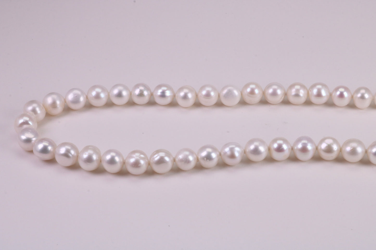 25 Inches Long Single Strand Natural 8 mm Round Pearl Necklace set in Silver