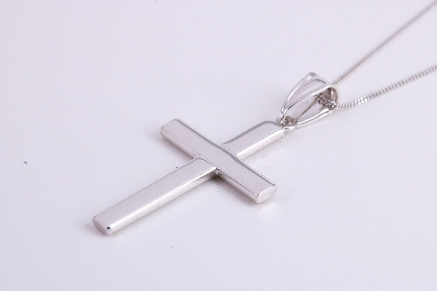 27 mm Long Cross Necklace Together with 16 Inch Long Chain, Made from Solid White Gold with High Polished Finish