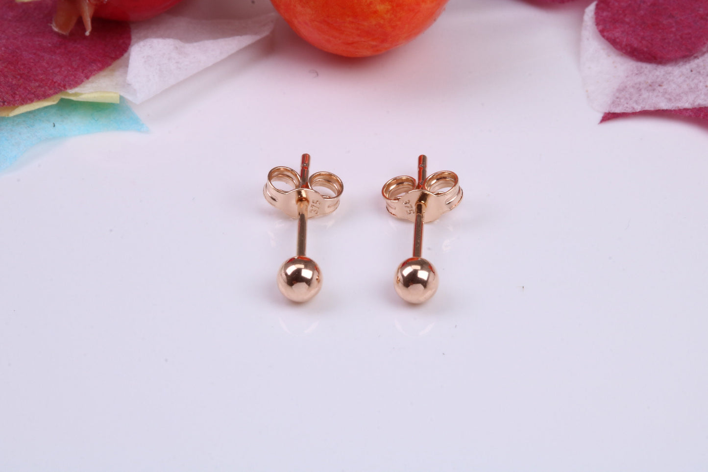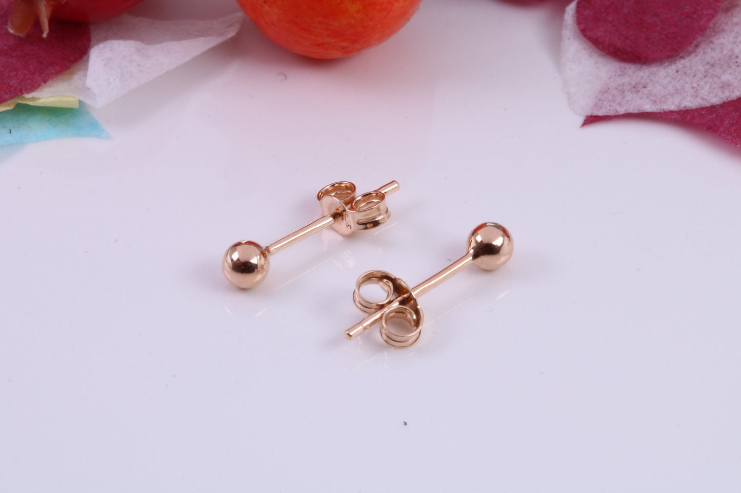 3 mm Round Ball Stud Earrings Made from 9ct Rose Gold