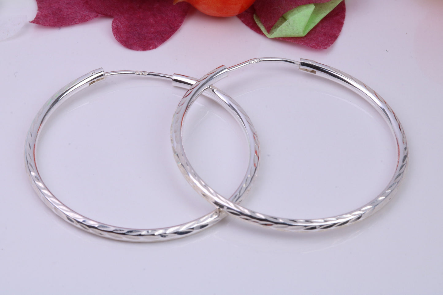 34 mm Round Diamond cut Sleeper Hoop Earrings Made from 925 Grade Sterling Silver