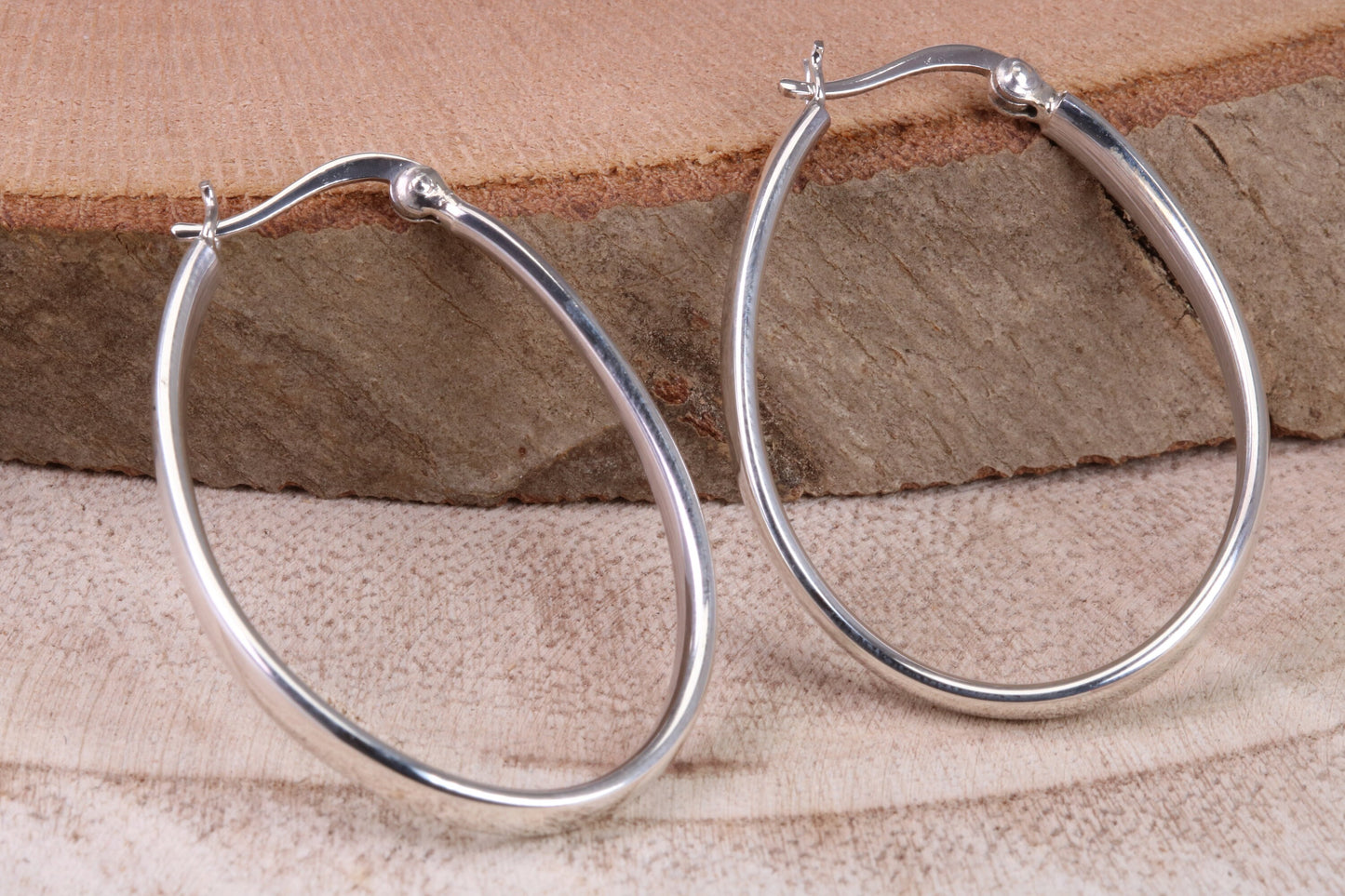 38 mm Long Hoop Creole Earrings Made from Solid 925 Grade Sterling Silver