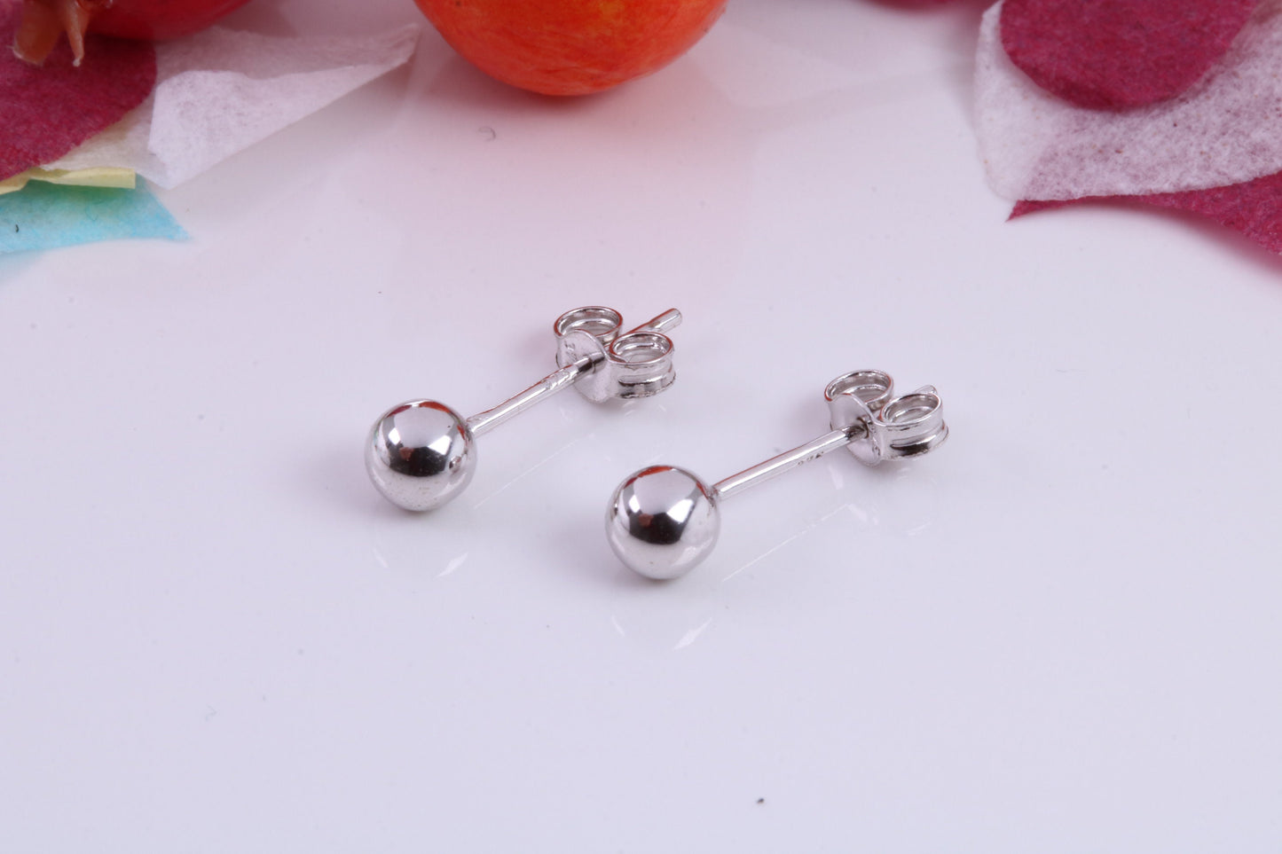 4 mm Round Ball Stud Earrings Made from 9ct White Gold
