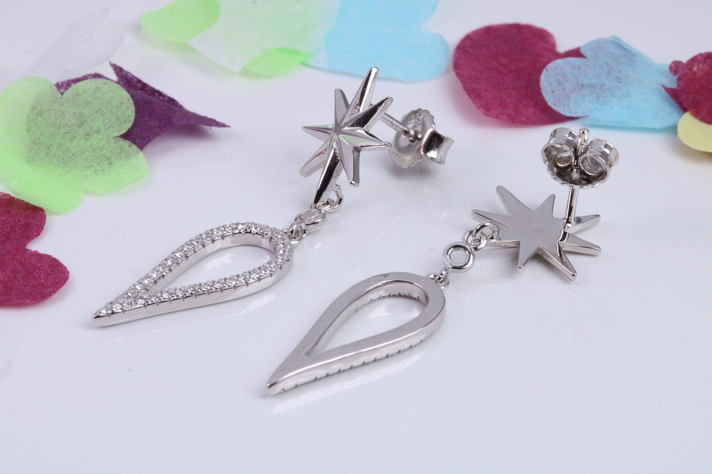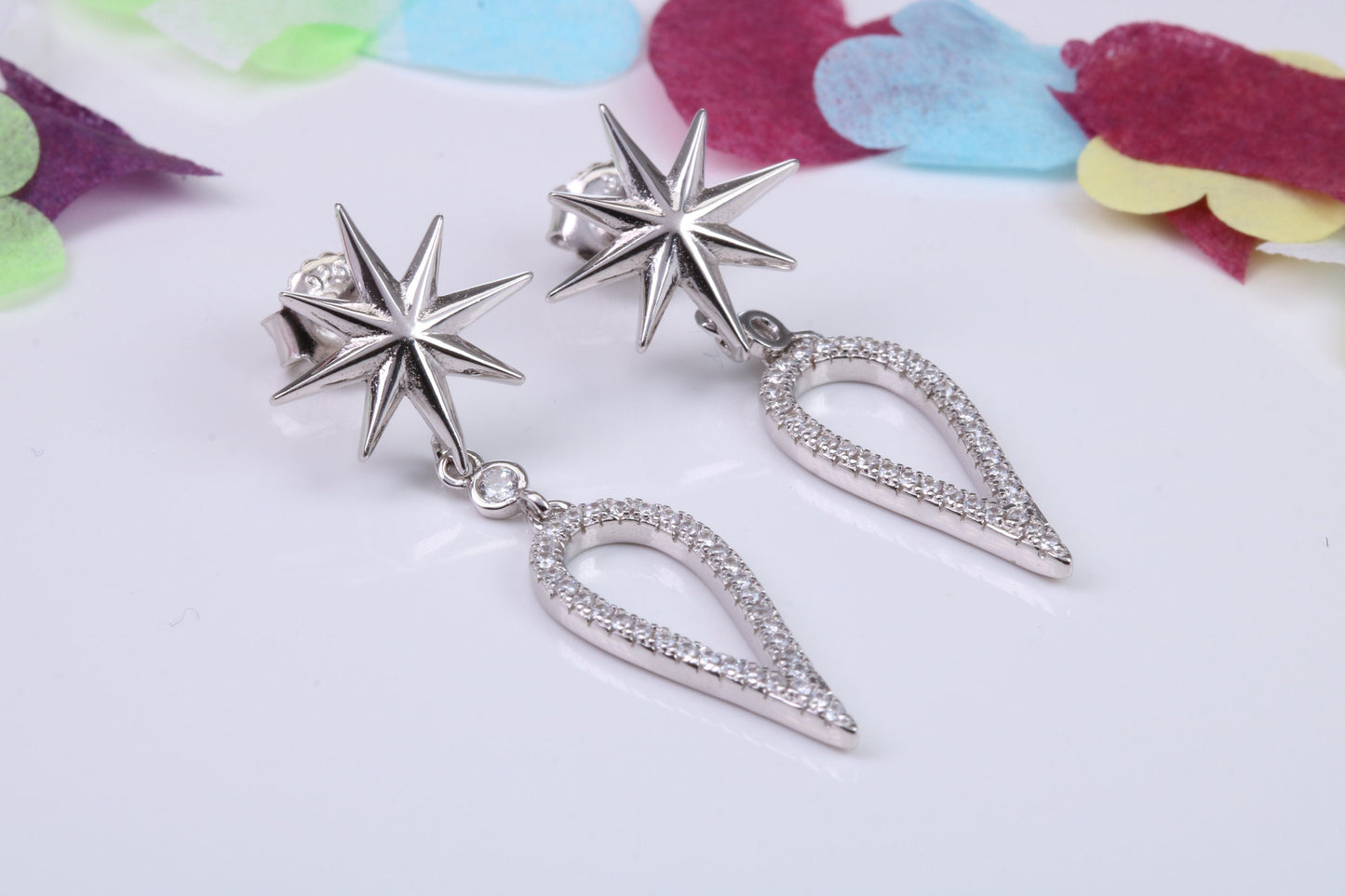 40 mm Long Dropper Earrings, Cubic Zirconia set, Made from Solid 925 Grade Sterling Silver