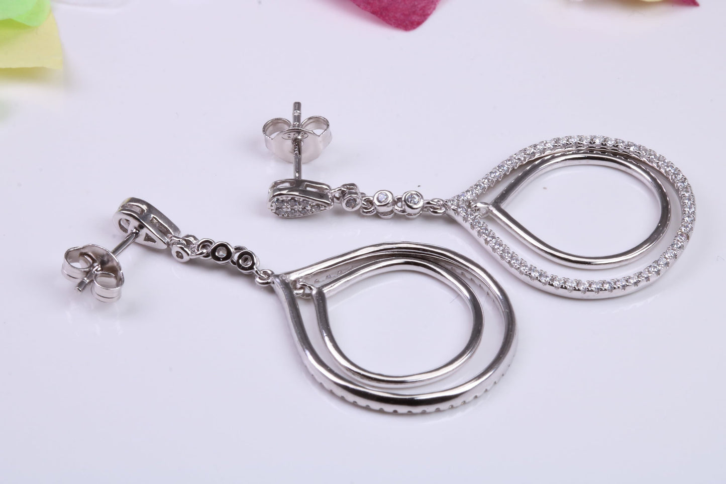 45 mm Long Dropper Earrings, Cubic Zirconia set, Made from Solid 925 Grade Sterling Silver