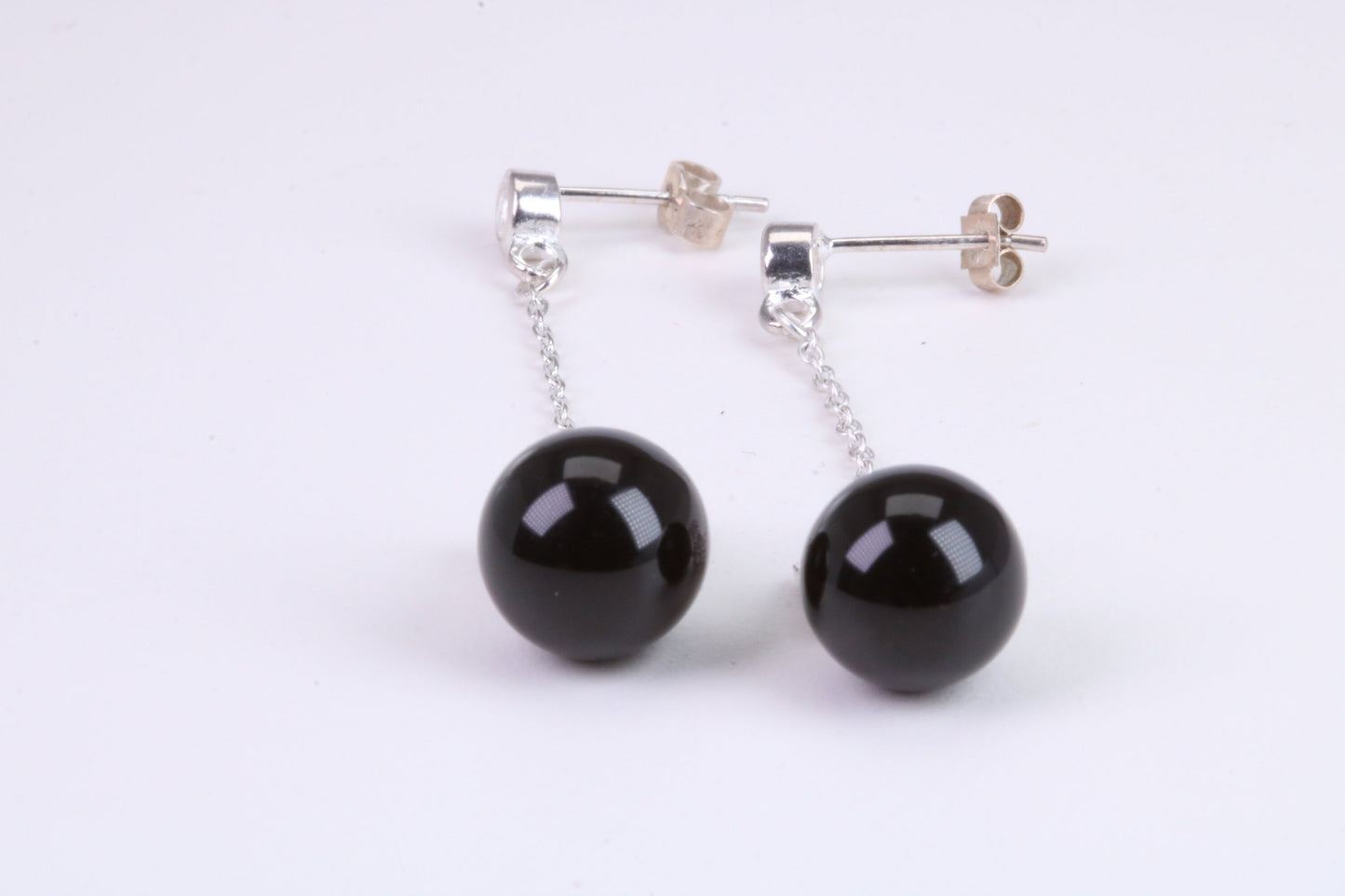 45 mm Long Natural Onyx and Cubic Zirconia set Dropper Earrings, set in Solid Silver