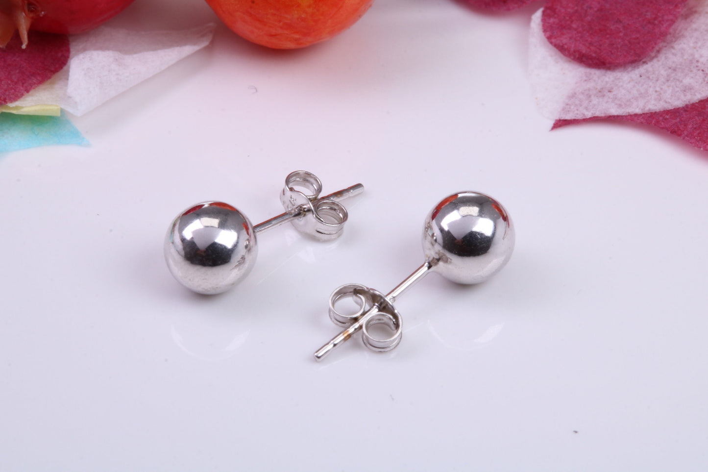 6 mm Round Ball Stud Earrings Made from 9ct White Gold