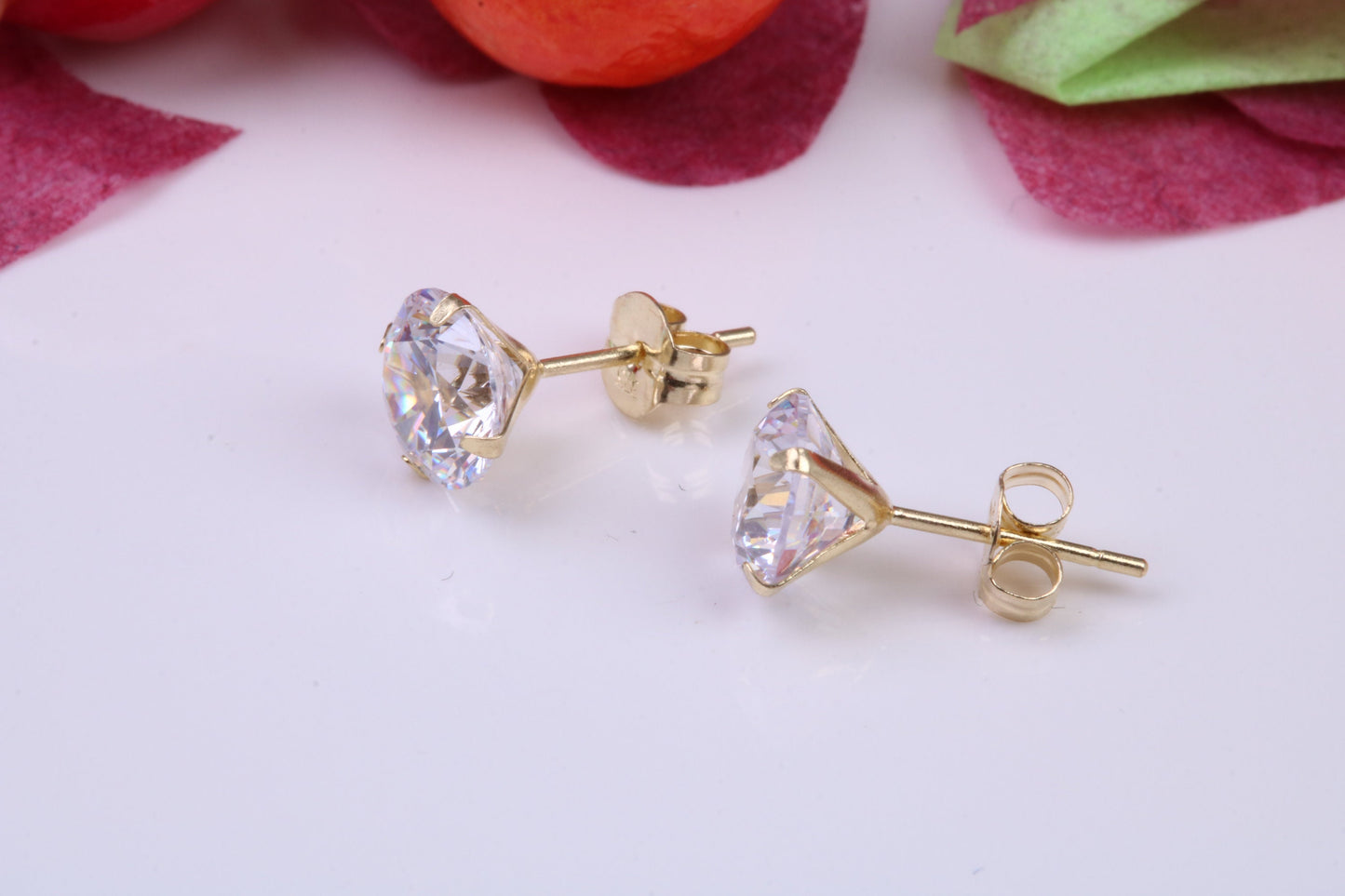 6 mm Round Cubic Zirconia set Stud Earrings, Made from Solid 9ct Yellow Gold
