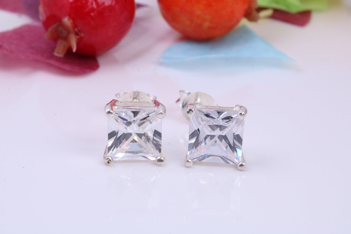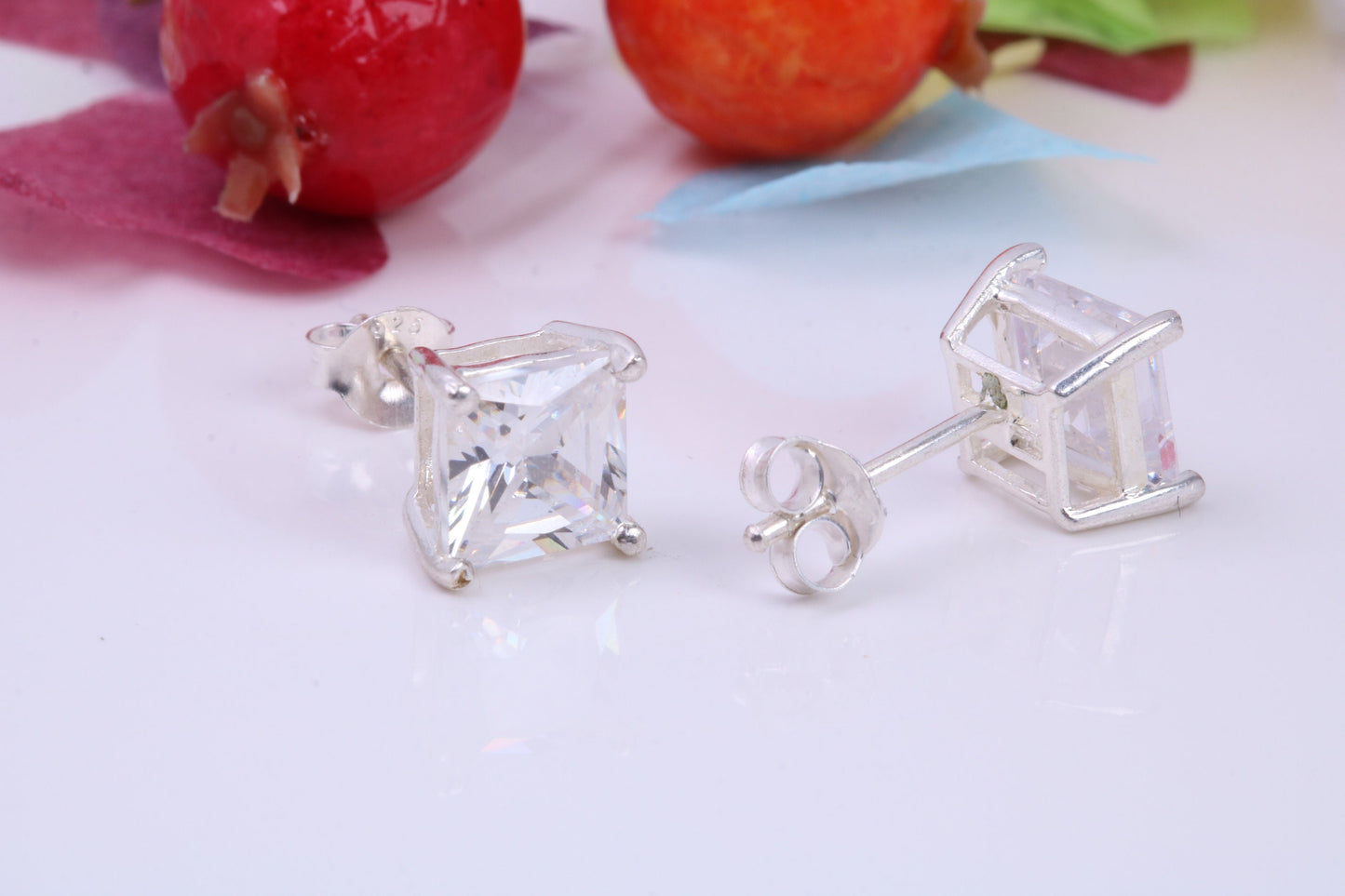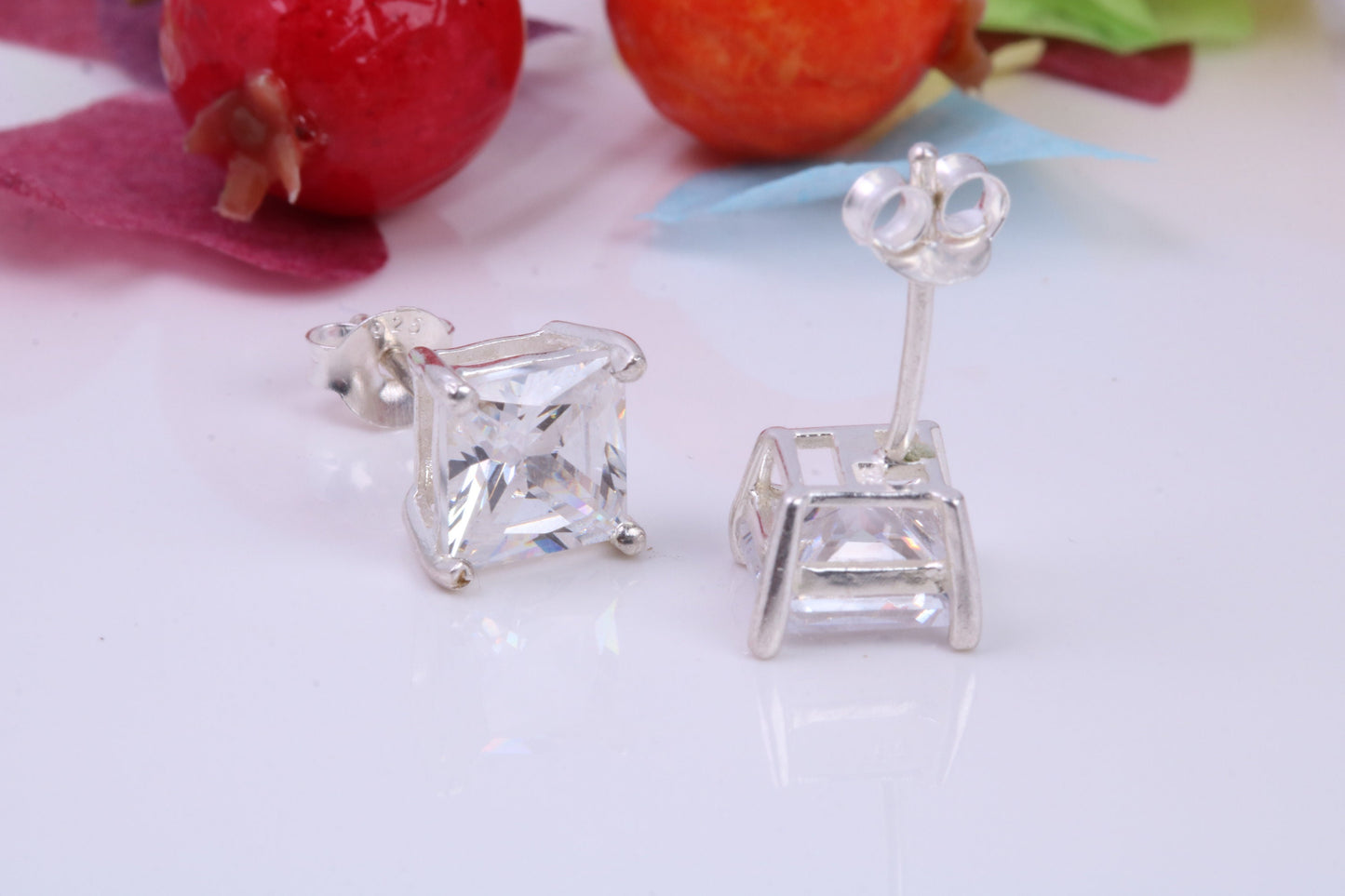 7 mm Square Cubic Zirconia set Stud Earrings, Made from Solid Cast Sterling Silver, Ideal for Gents