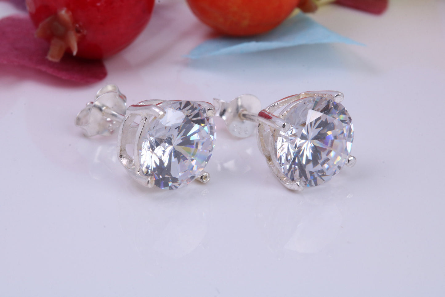 9 mm Round Cubic Zirconia set Stud Earrings, Made from Solid Cast Sterling Silver, Ideal for Gents