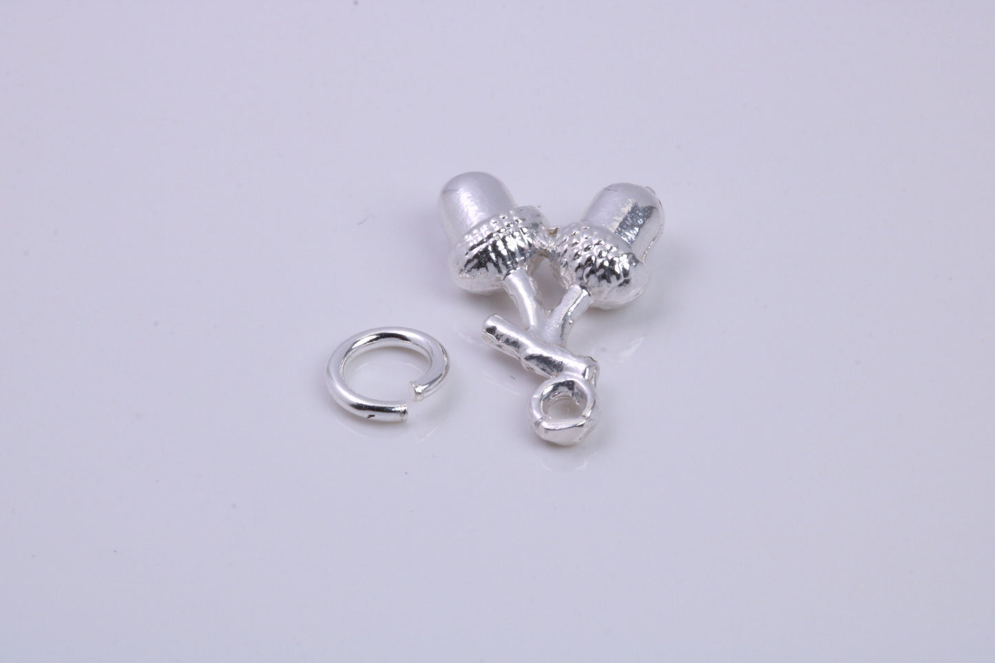 Acorns Charm, Traditional Charm, Made from Solid 925 Grade Sterling Silver, Complete with Attachment Link