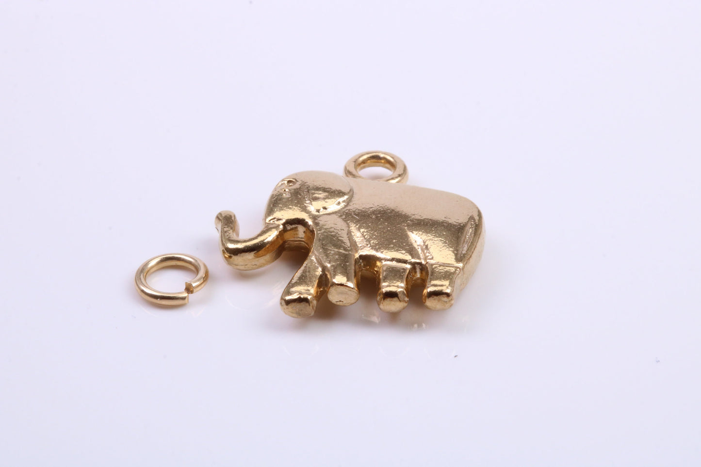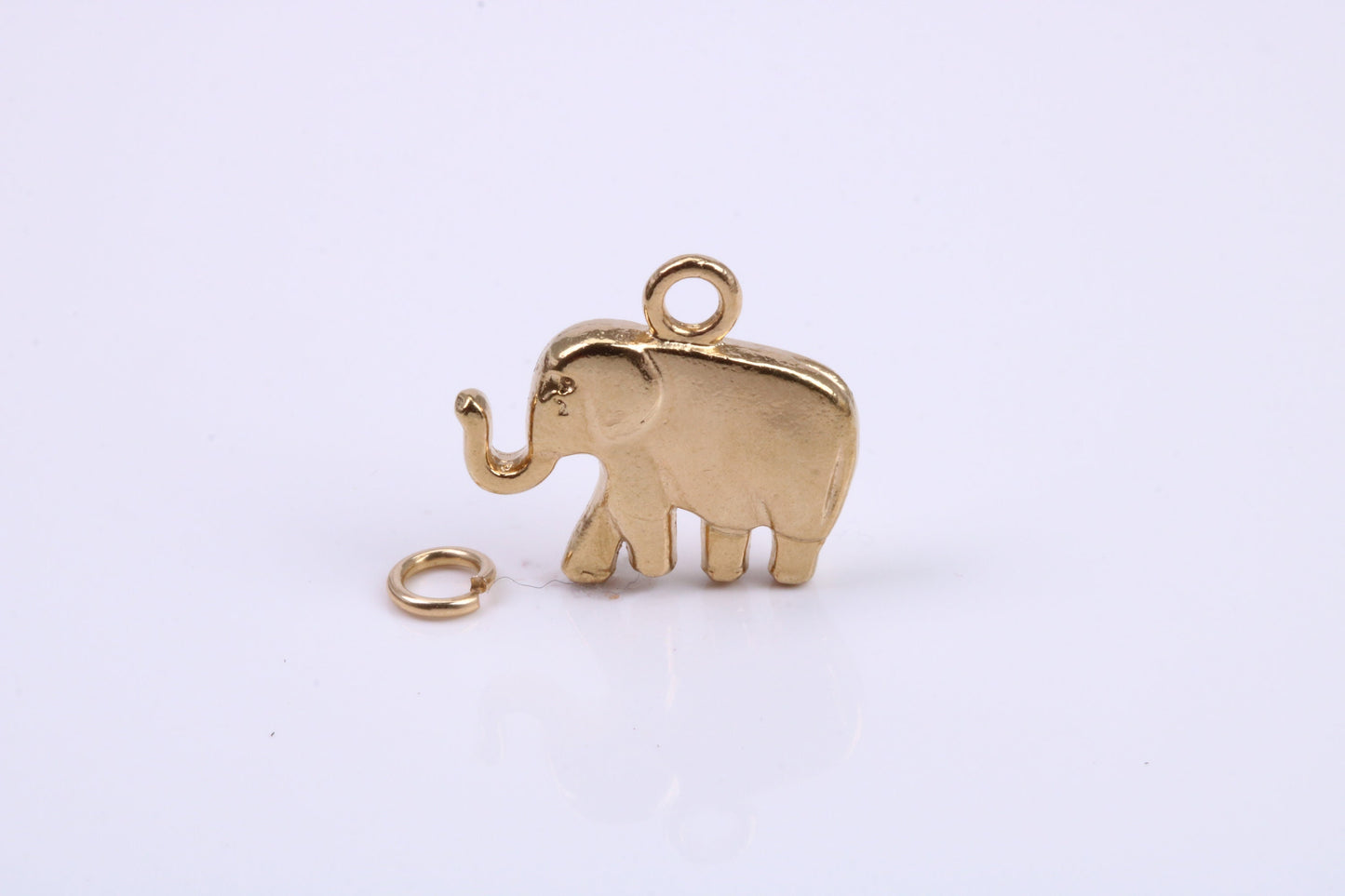 African Elephant Charm, Traditional Charm, Made from Solid 9ct Yellow Gold, British Hallmarked, Complete with Attachment Link