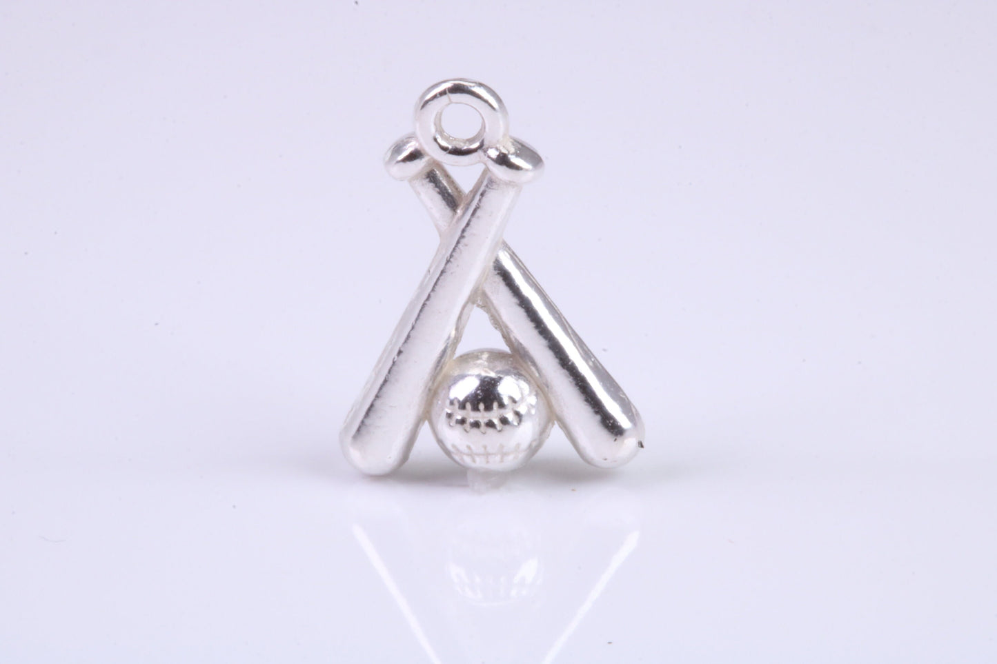 Baseball Set Charm, Traditional Charm, Made from Solid 925 Grade Sterling Silver, Complete with Attachment Link