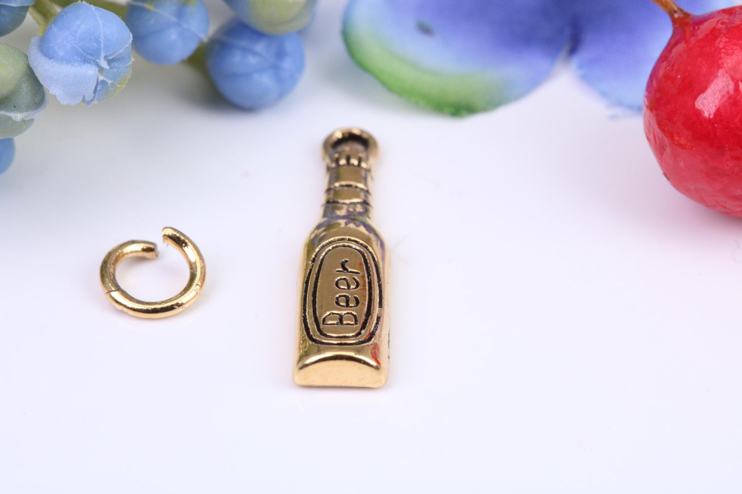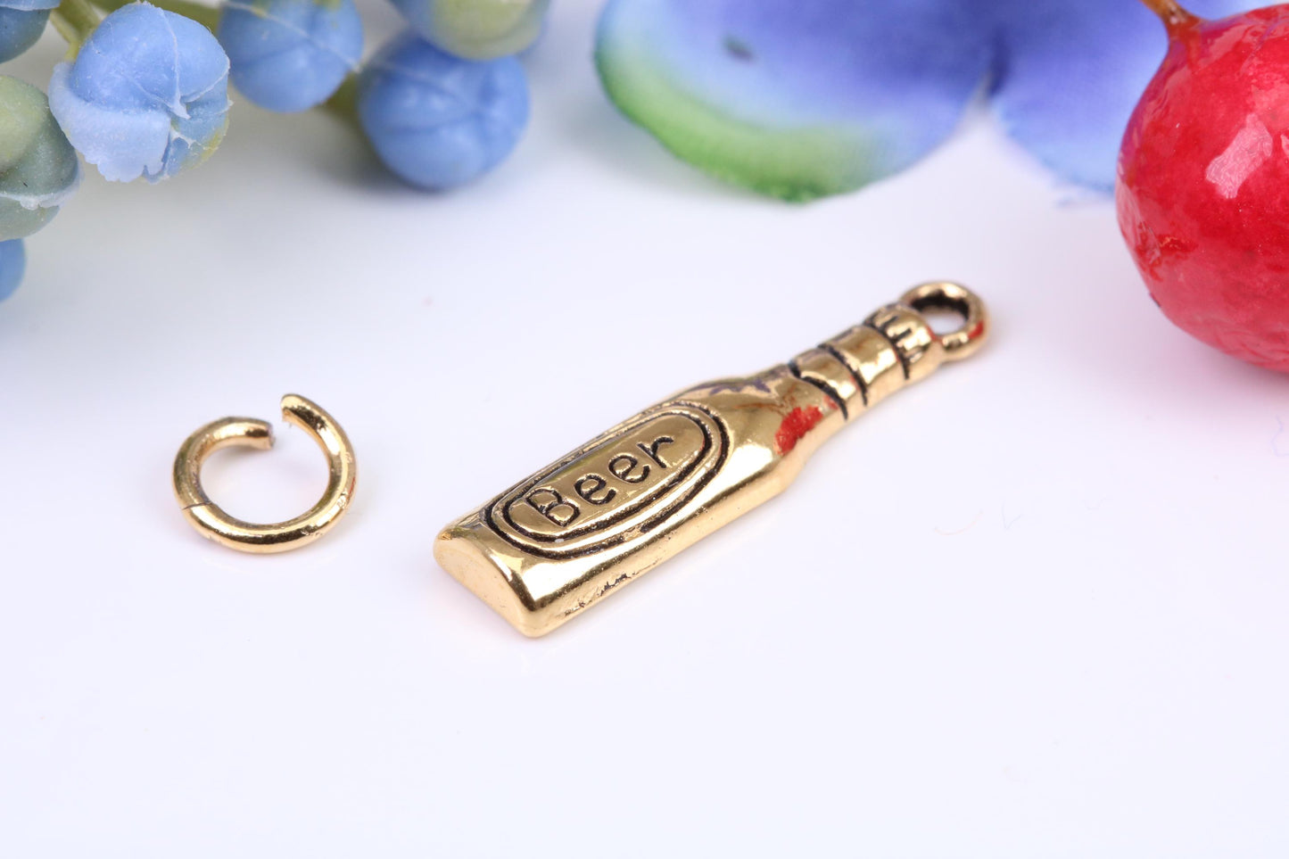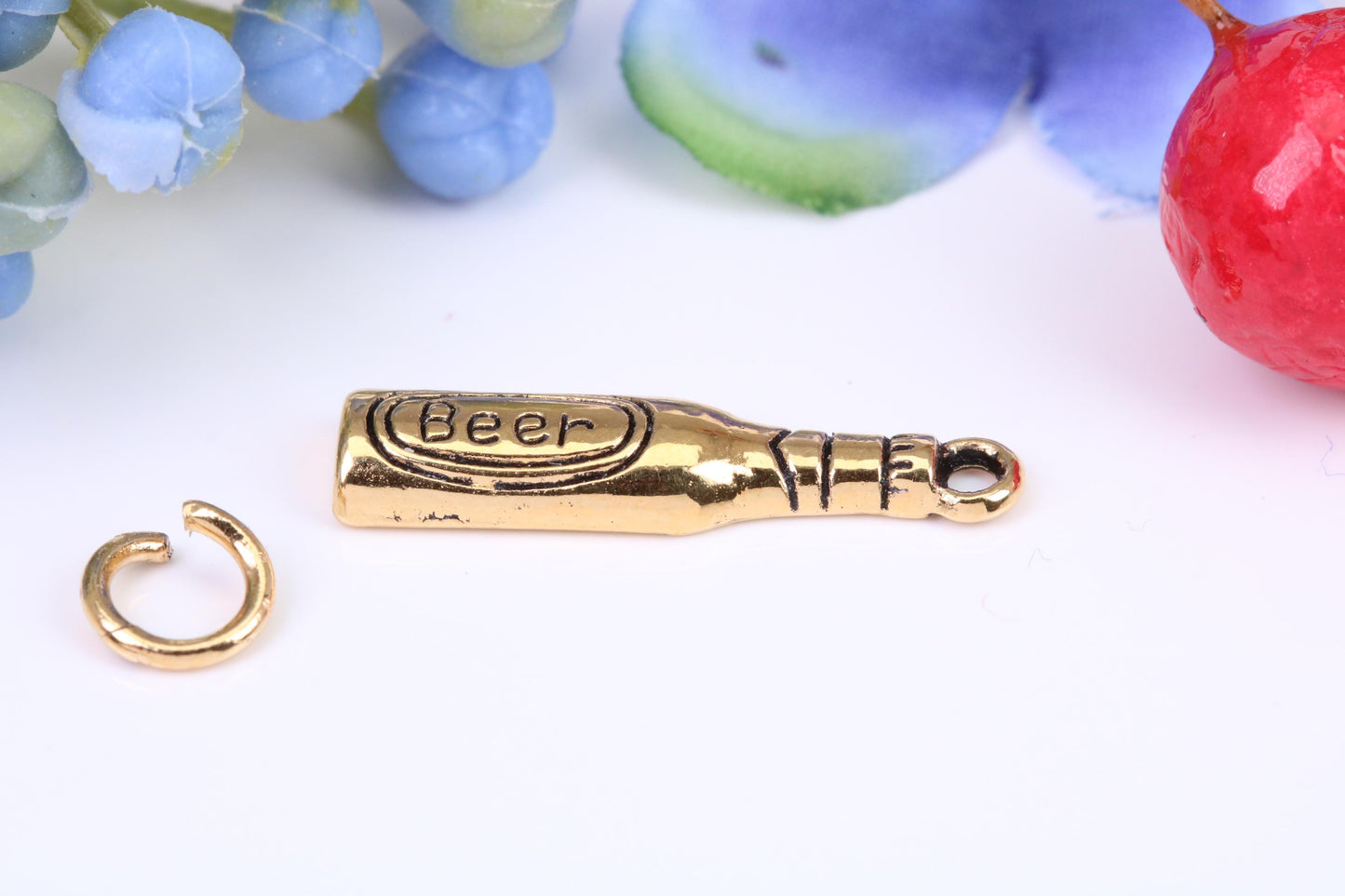 Beer Bottle Charm, Made From Solid Cast Yellow Gold with British Hallmark