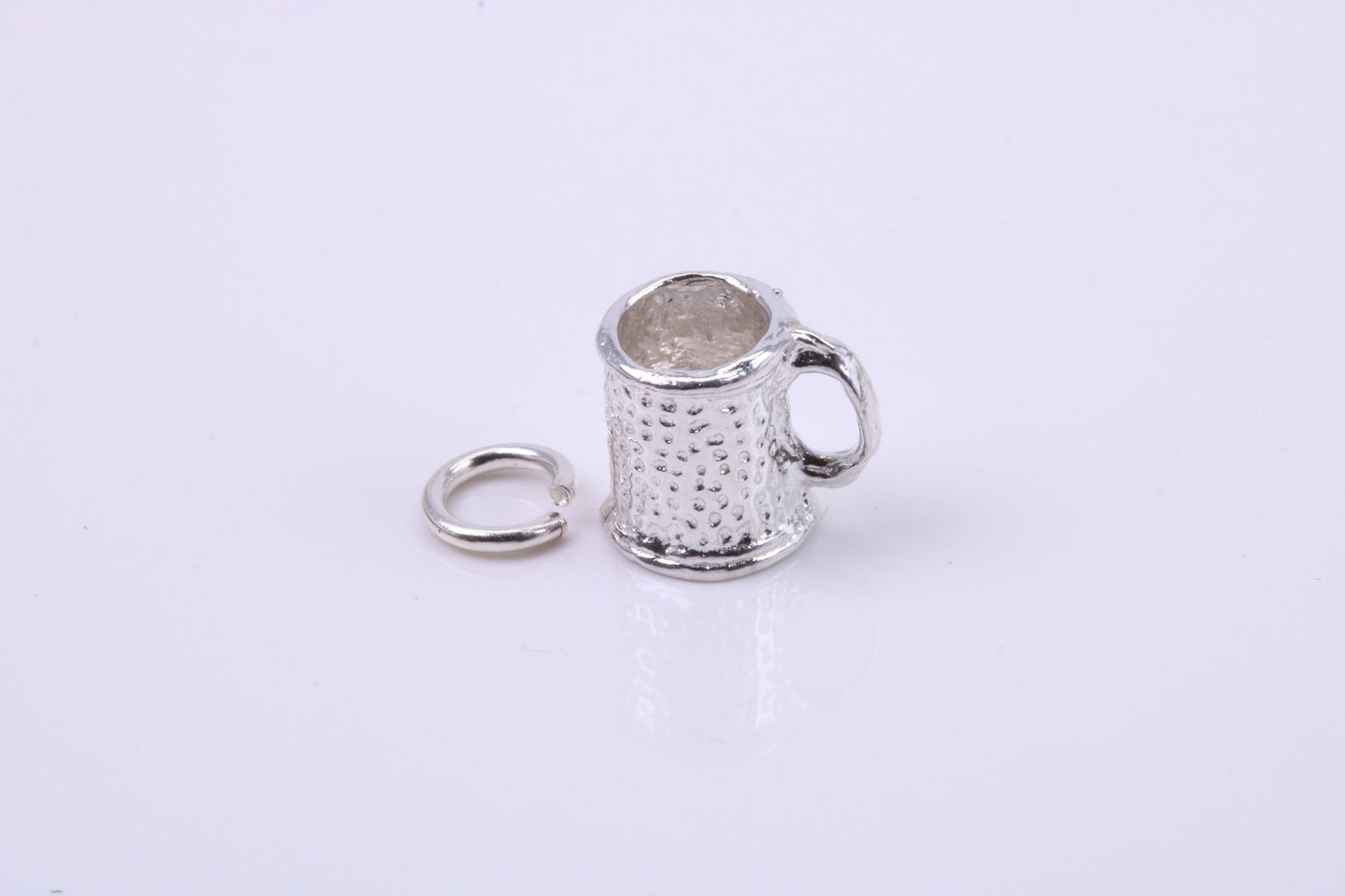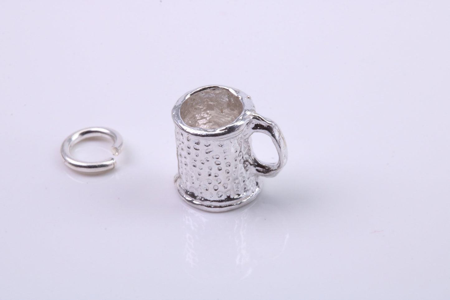 Beer Tankard Charm, Traditional Charm, Made from Solid 925 Grade Sterling Silver, Complete with Attachment Link