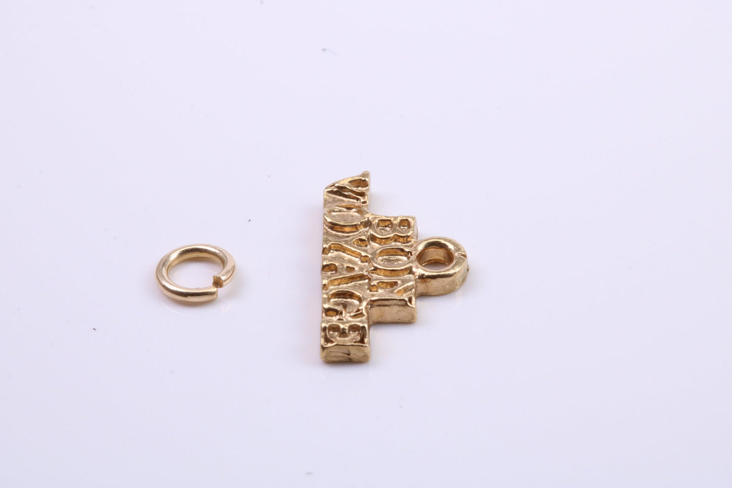 Bon Voyage Charm, Traditional Charm, Made from Solid 9ct Yellow Gold, British Hallmarked, Complete with Attachment Link