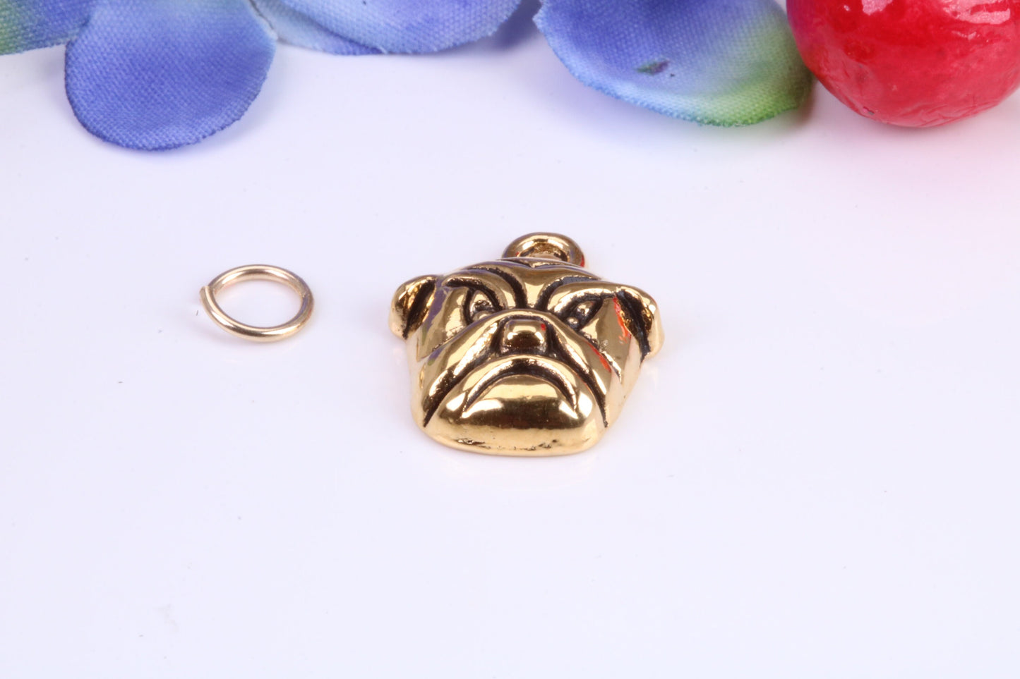 Bull Dog Charm, Traditional Charm, Made from Solid Cast Yellow Gold, British Hallmarked