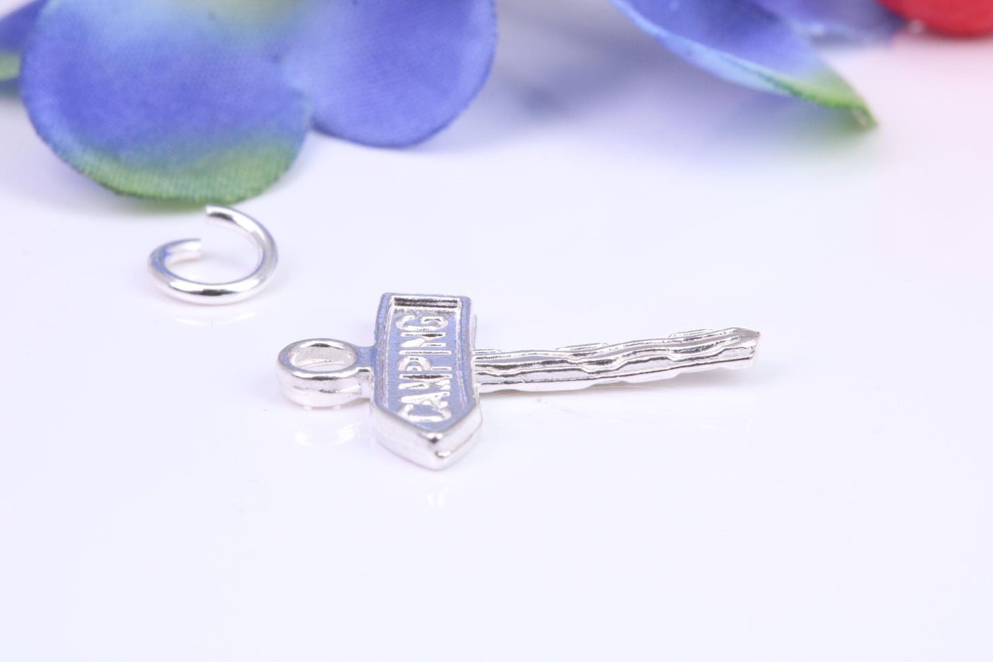 Camping Sign Charm, Traditional Three Dimensional Charm, Made from Solid Cast Silver