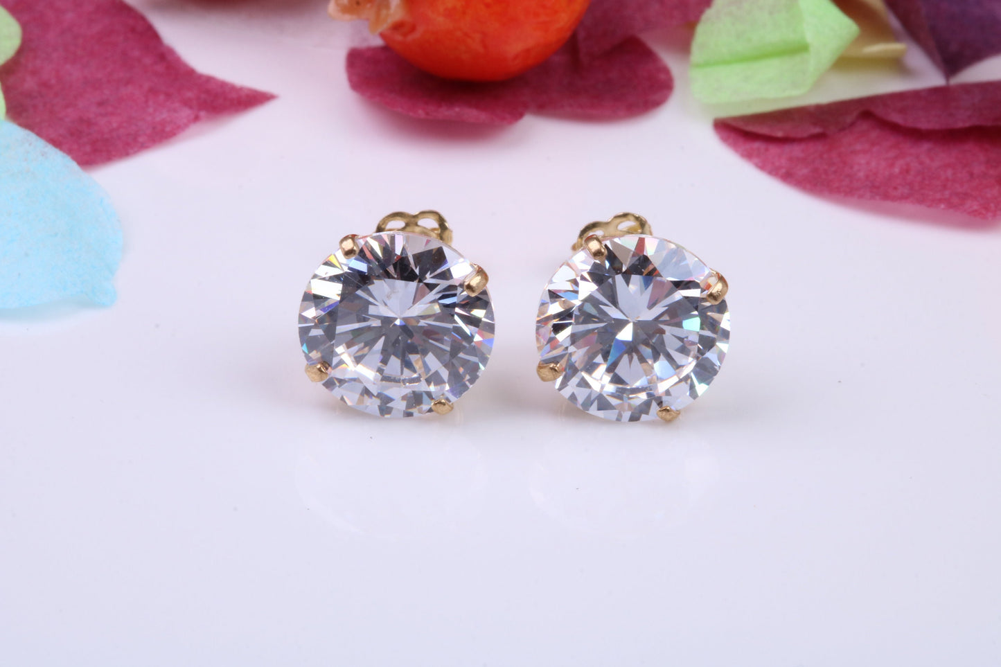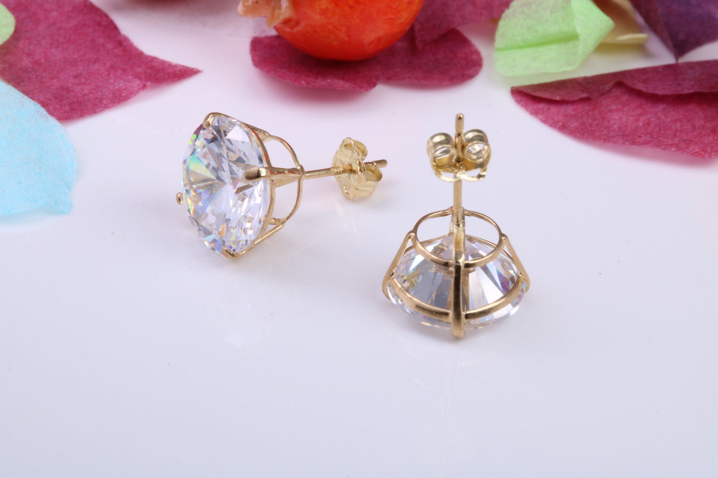 Cast Gold 10 mm Round Cubic Zirconia set Stud Earrings, Made from Solid 9ct Yellow Gold Casting, Ideal for Gents