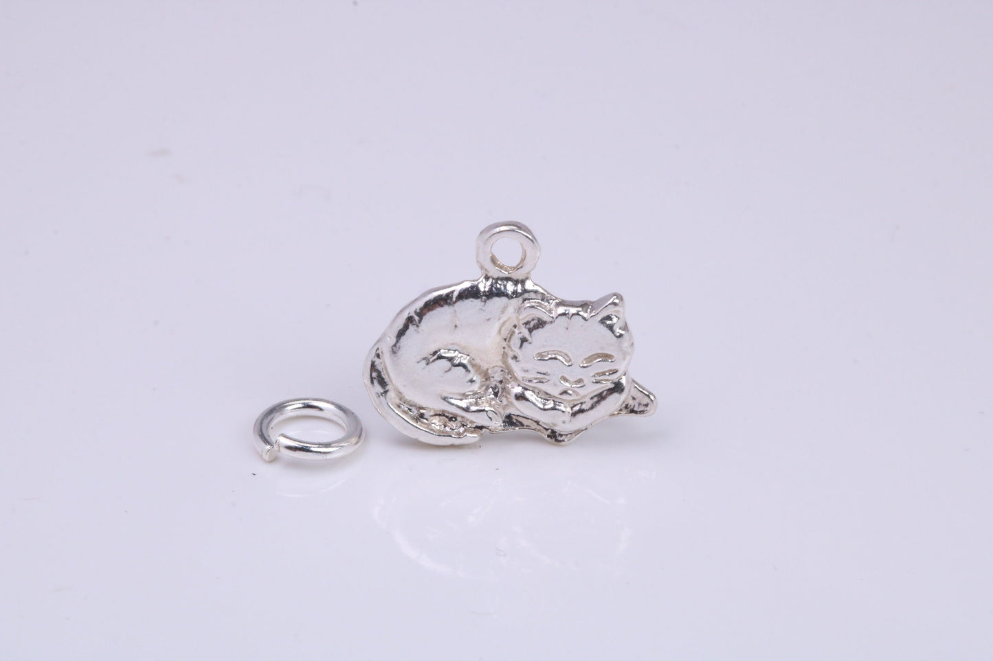 Cat Charm, Traditional Charm, Made from Solid 925 Grade Sterling Silver, Complete with Attachment Link