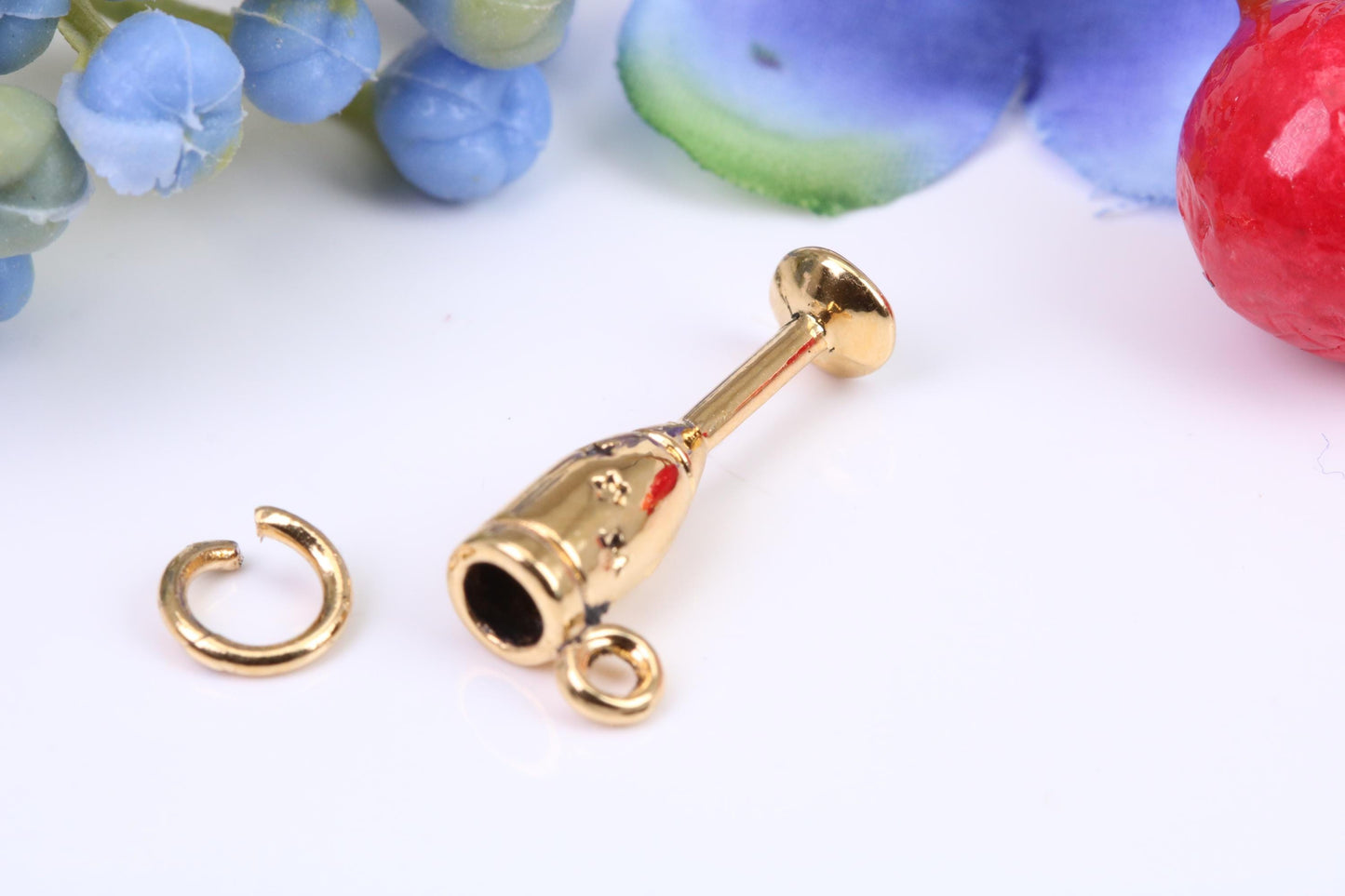 Champagne Flute Charm, Made from Solid Cast Yellow Gold, British Hallmarked