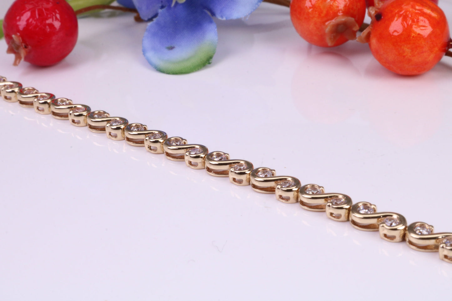 Cubic Zirconia set Bracelet, Made From Solid Yellow Gold, Gold and Diamond Look, British Hallmarked, Luxury Gift Boxed