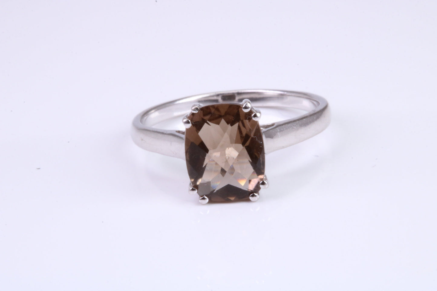 Cushion cut Smokey Quartz set Sterling Silver Ring