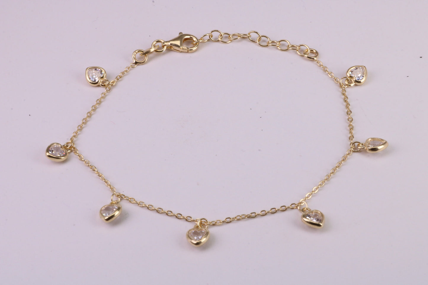 Dainty Love Hearts Bracelet, With Length Adjustable Chain, Made from solid Sterling Silver and Further 18ct Yellow Gold Plated