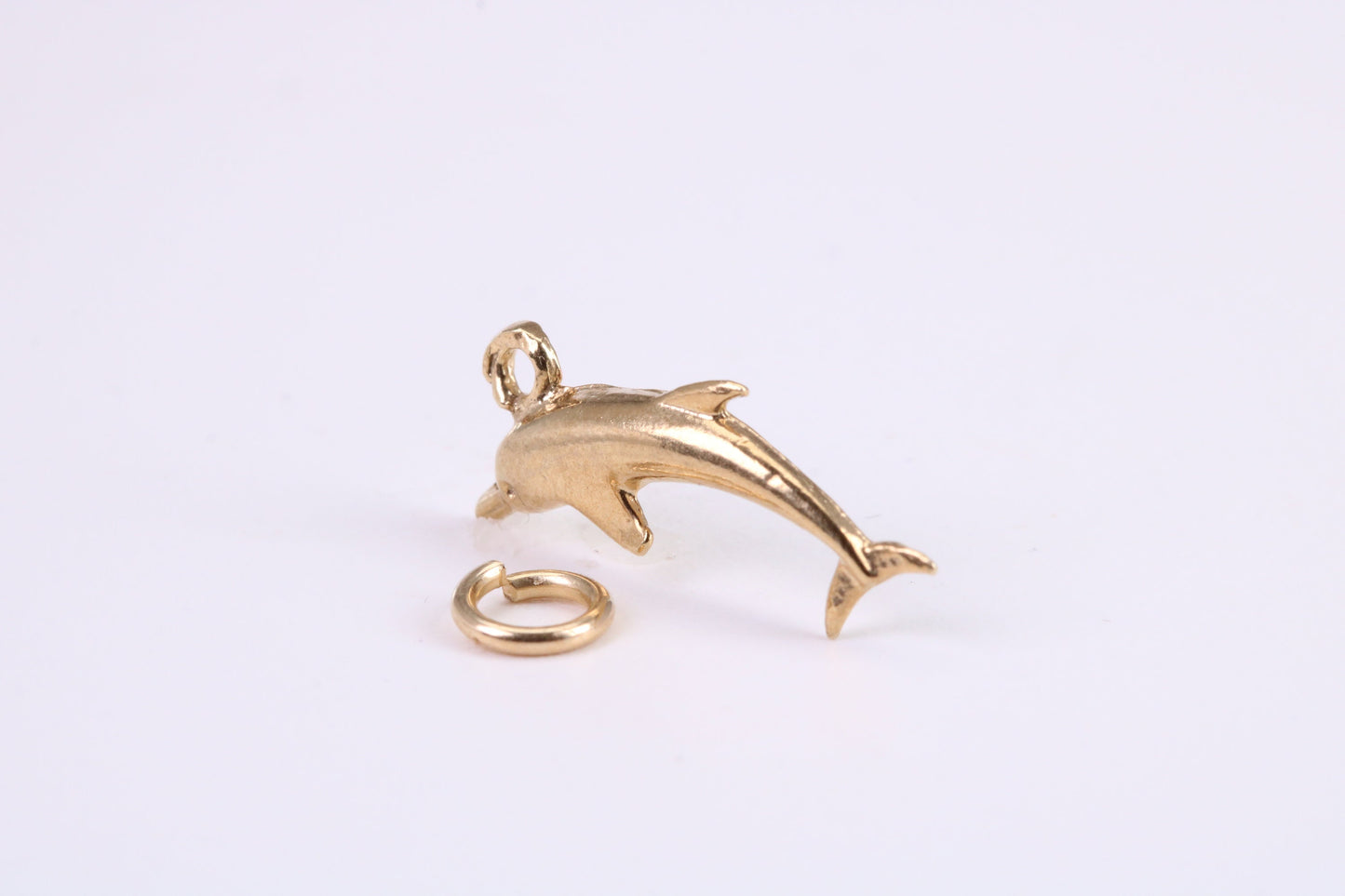 Dolphin Charm, Traditional Charm, Made from Solid Yellow Gold, British Hallmarked, Complete with Attachment Link