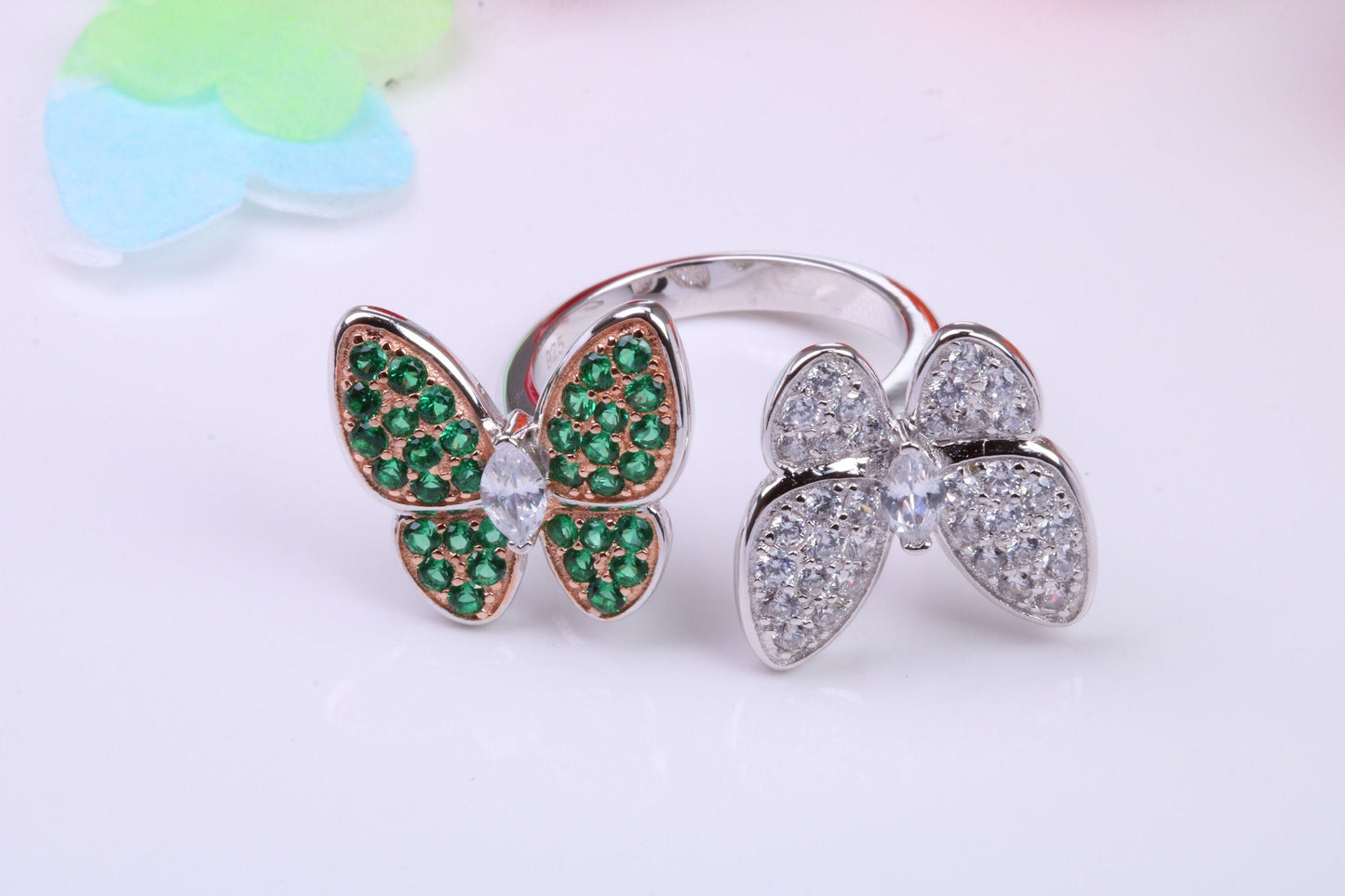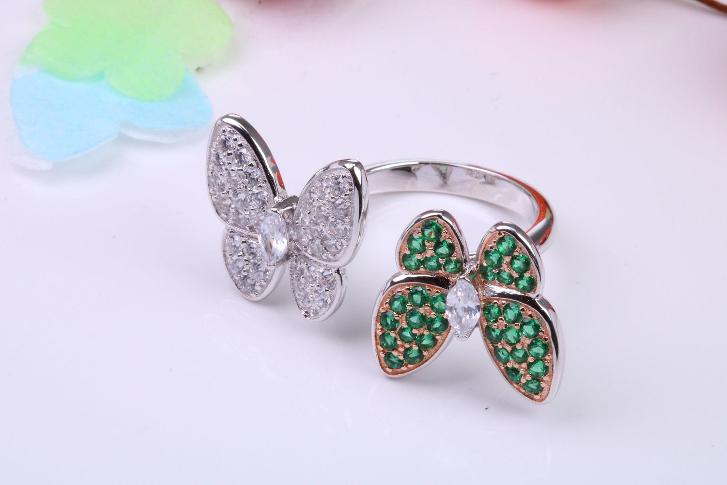 Double Butterfly Cubic Zirconia set Ring, Made from solid Silver