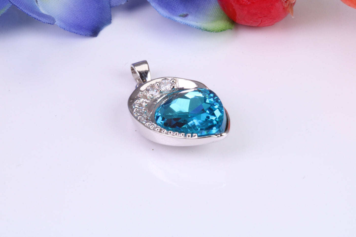 Sterling Silver with Real Blue Topaz and C Z set Pendant