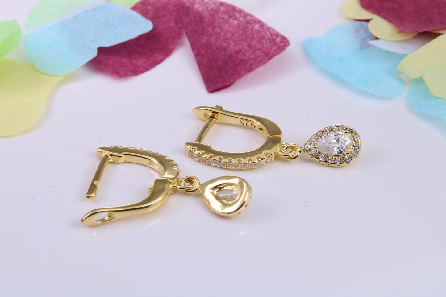 Dropper Hoop Earrings, Cubic Zirconia set, Made from Solid 925 Grade Sterling Silver, 18ct Yellow Gold Plated