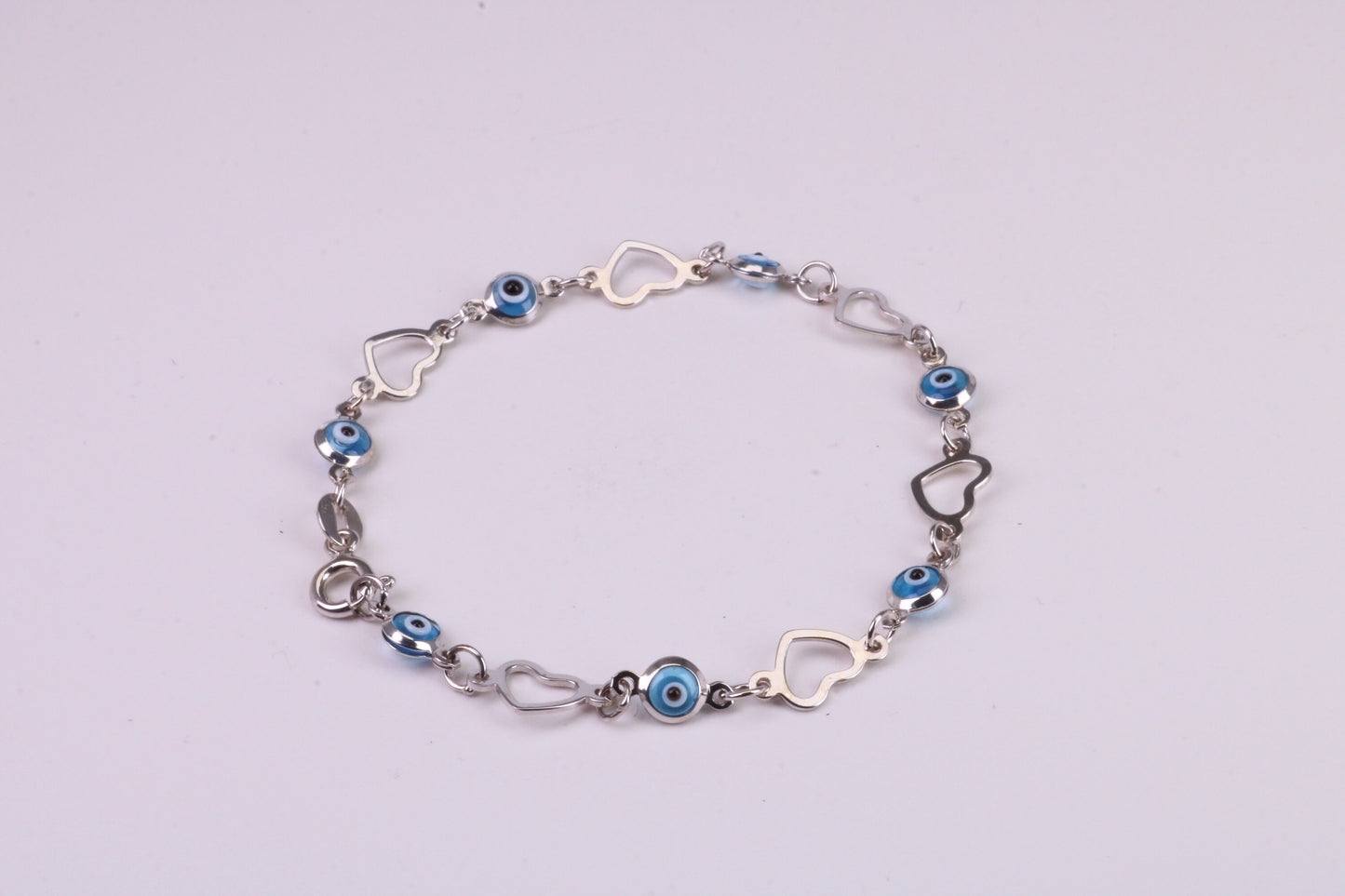 Evil Eye Protector Love Hearts Bracelet, Made from solid Sterling Silver