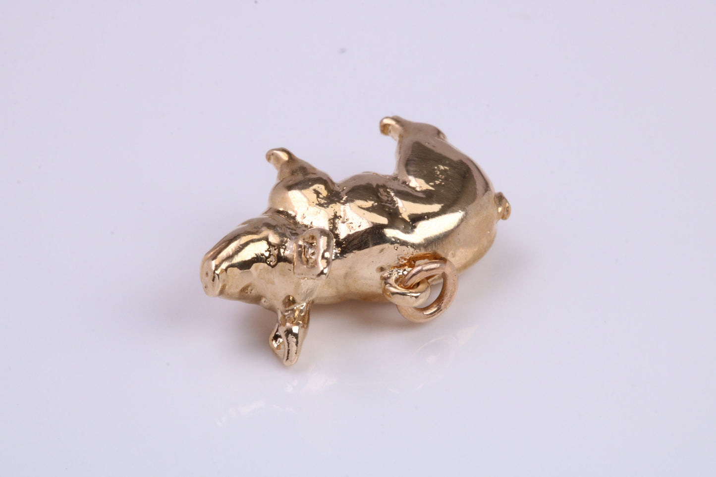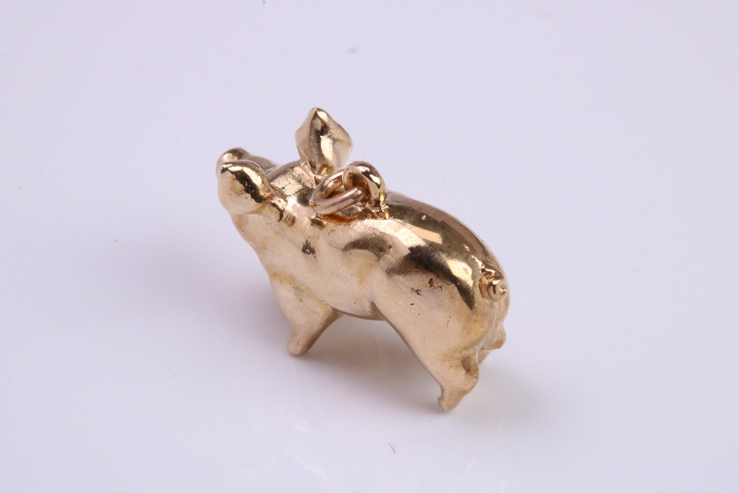 Farm Pig Charm, Made From Solid 9ct Yellow Gold, British Hallmarked and Complete With Attachment Link