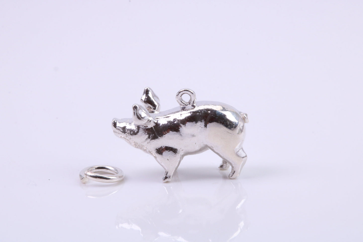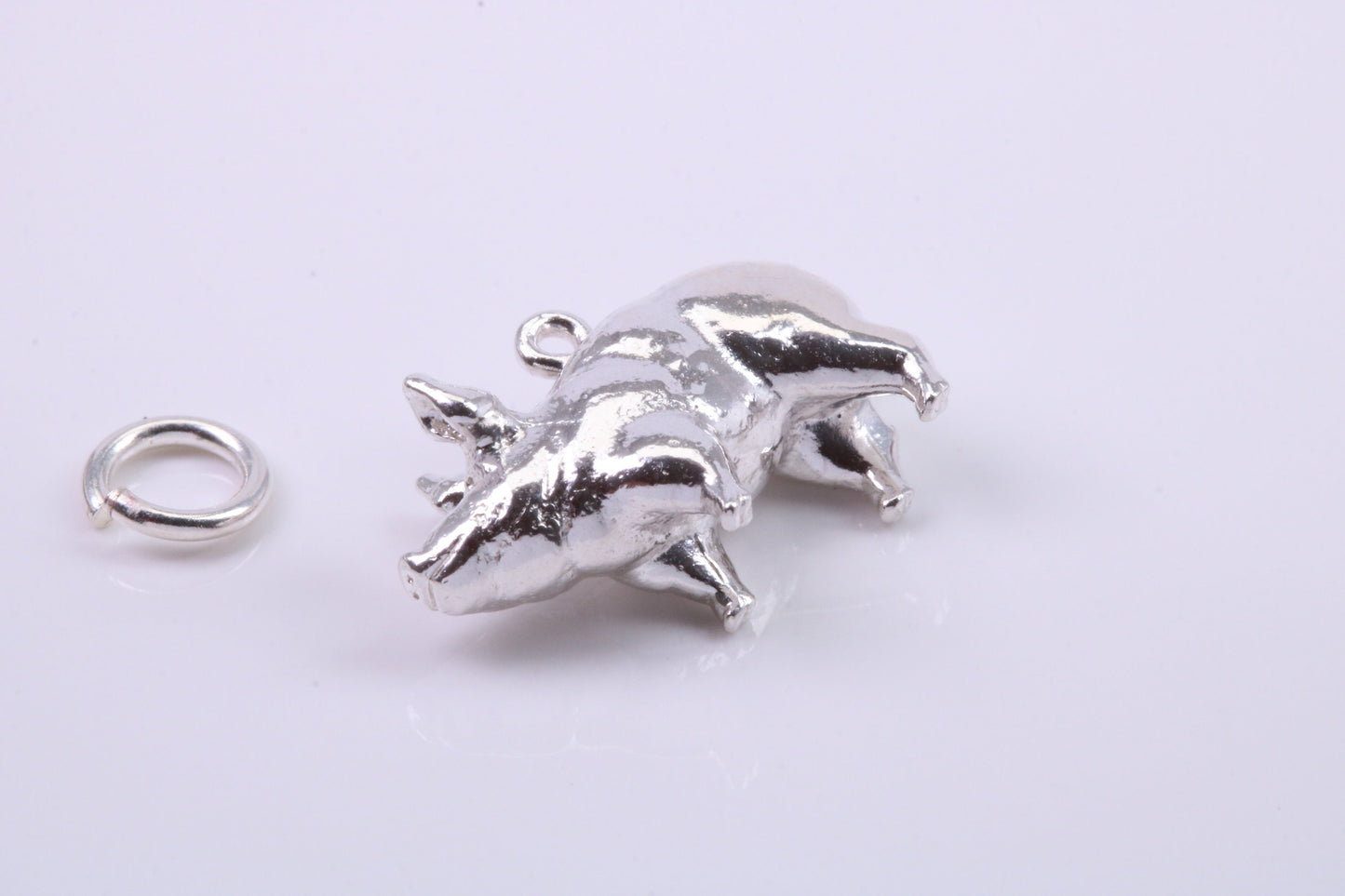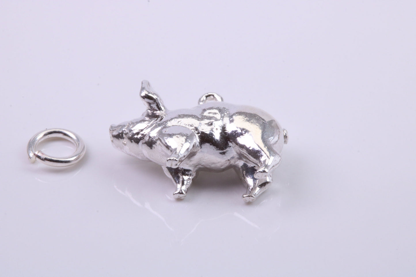 Farm Pig Charm, Traditional Charm, Made from Solid 925 Grade Sterling Silver, Complete with Attachment Link