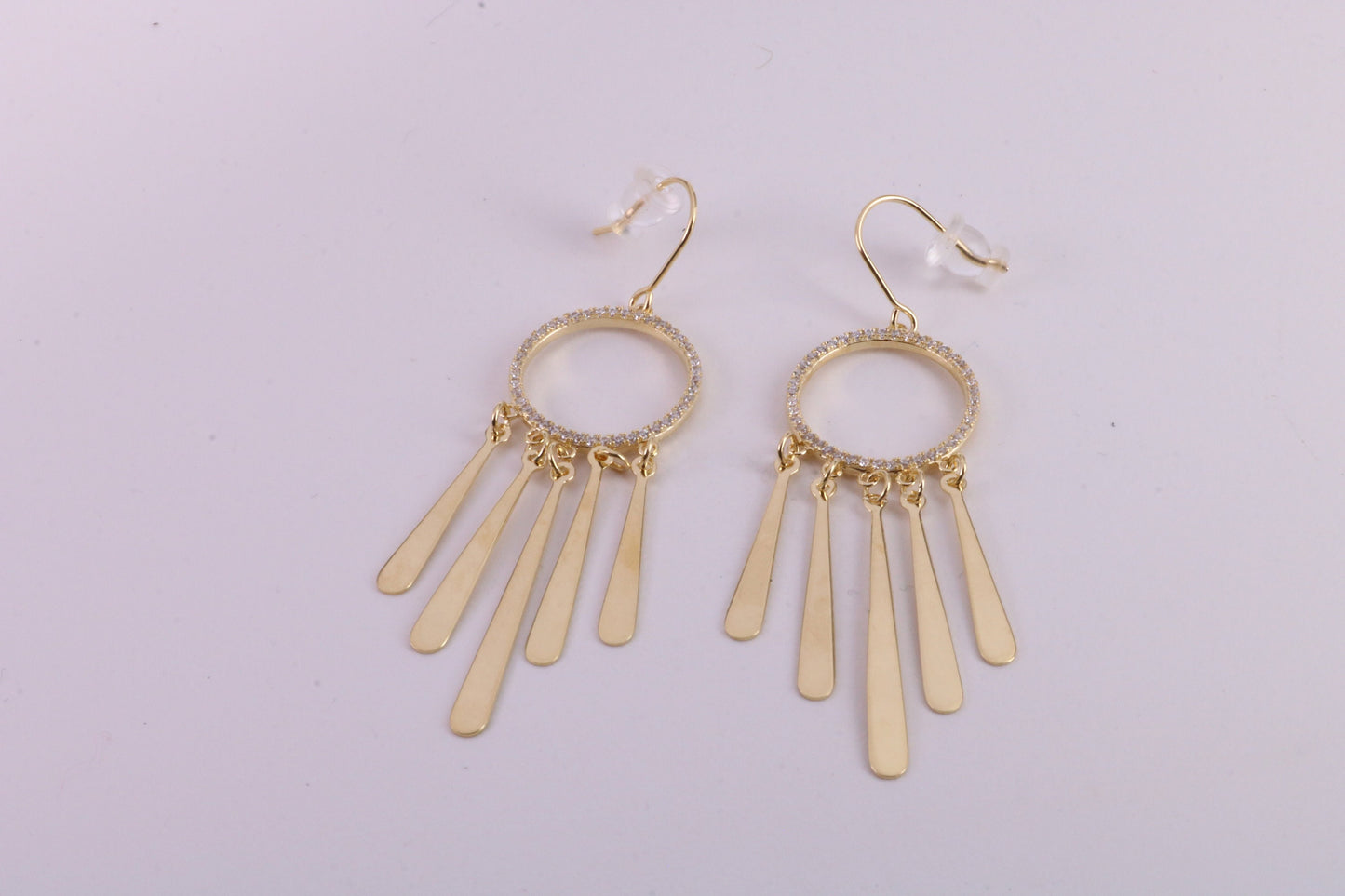 Fashionable 48 mm Long C Z Set Dropper Stud Earrings, Solid Silver with Yellow Gold Plating
