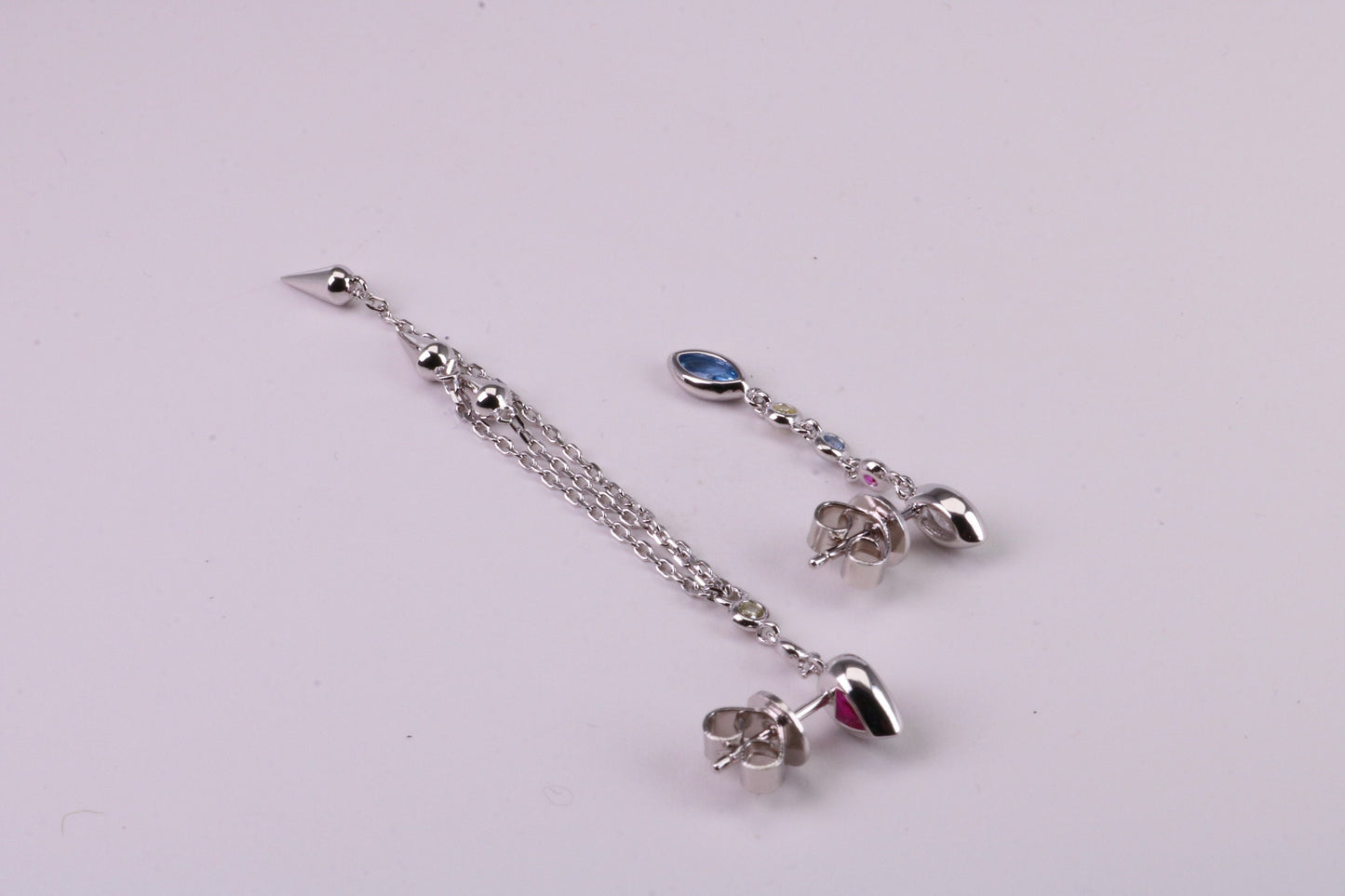 Fashionable Odd Pair 65 mm and 35 mm Long Dropper Stud Earrings, Solid Silver