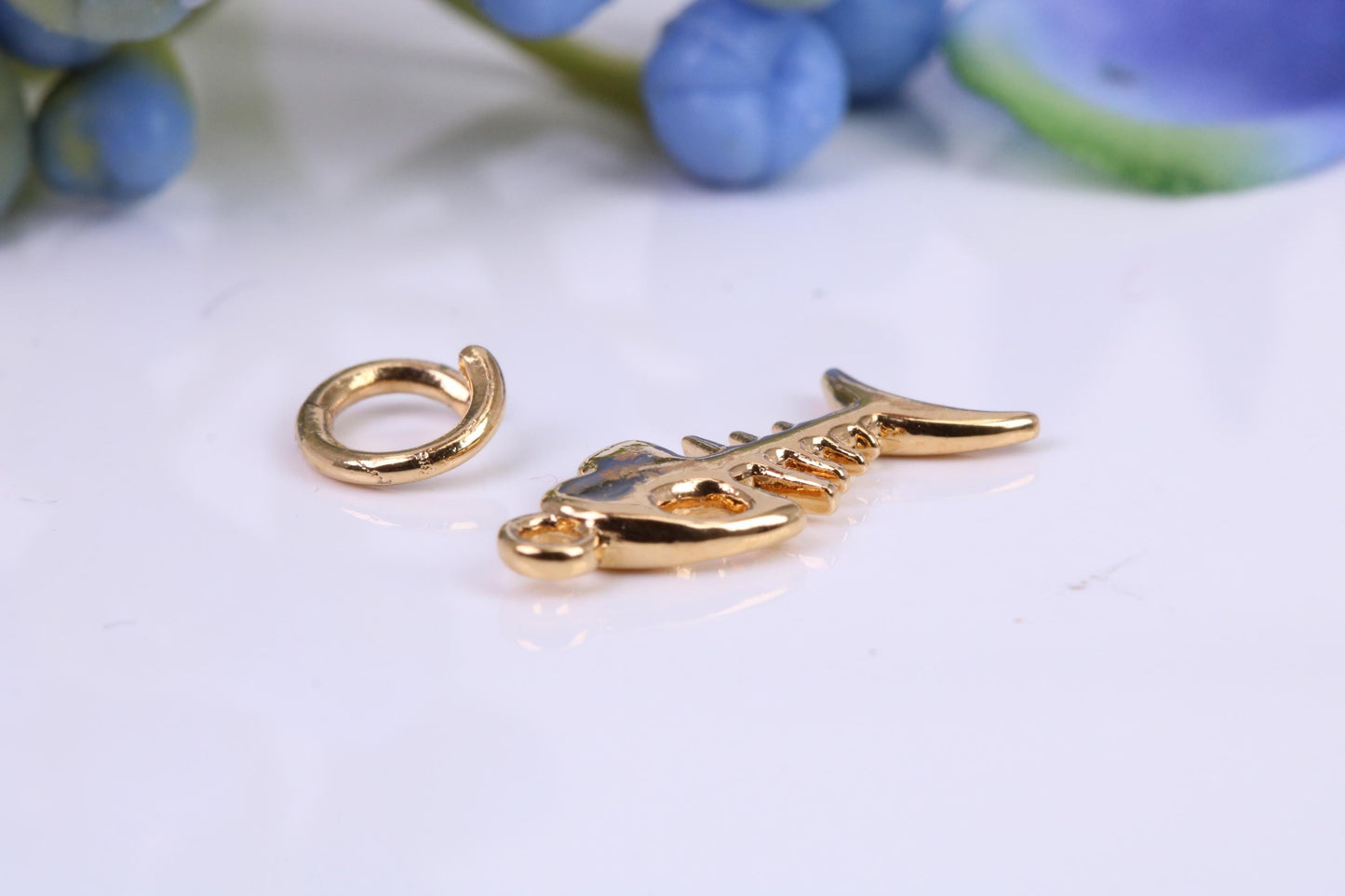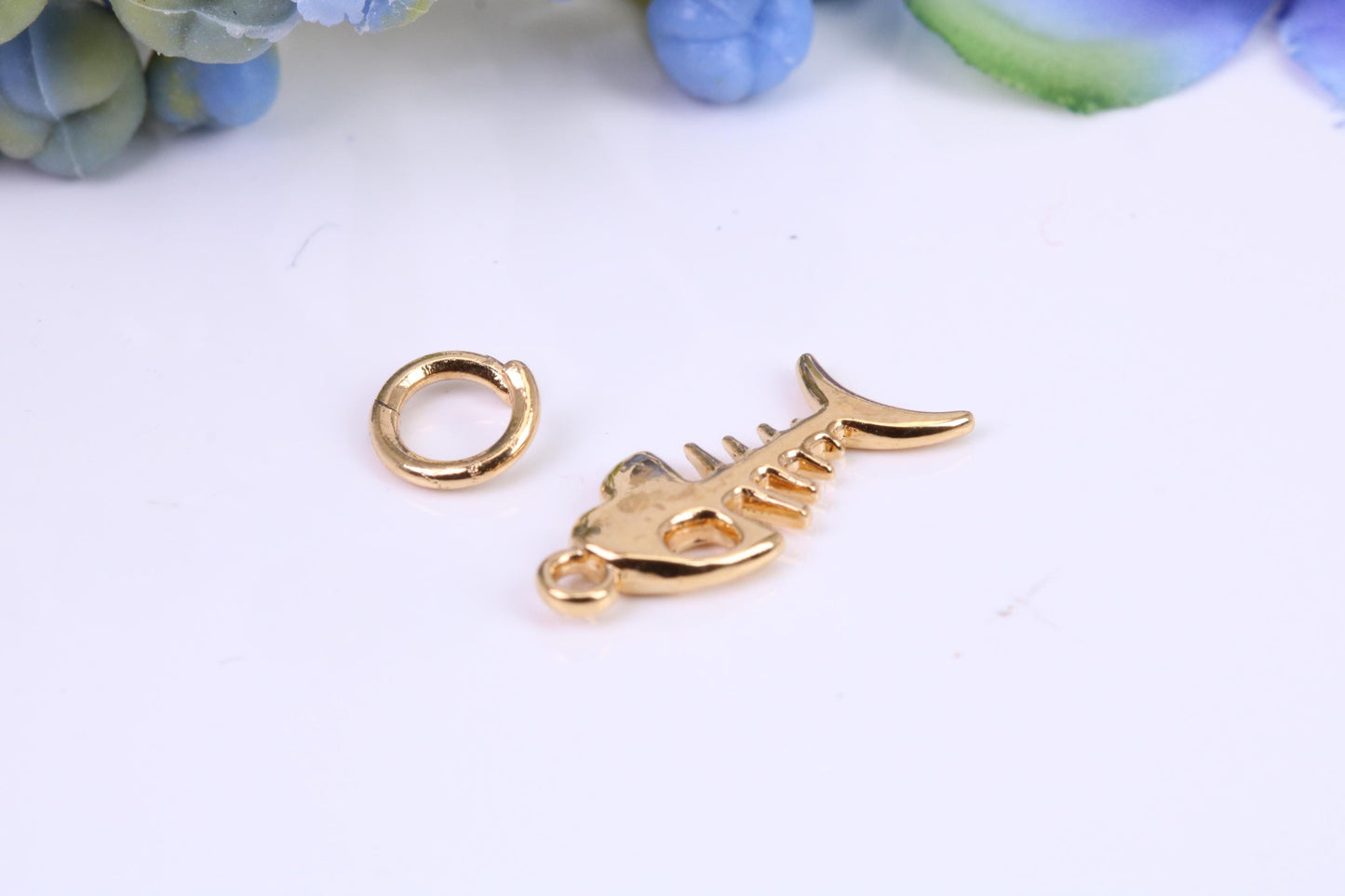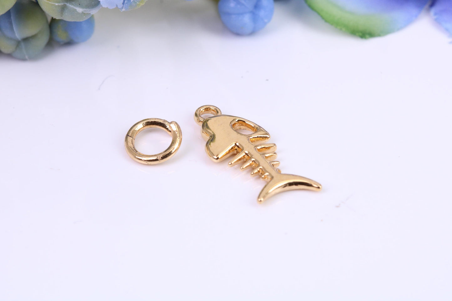 Fishbone Charm, Made from Solid Cast Yellow Gold, British Hallmarked, Complete with Attachment Link