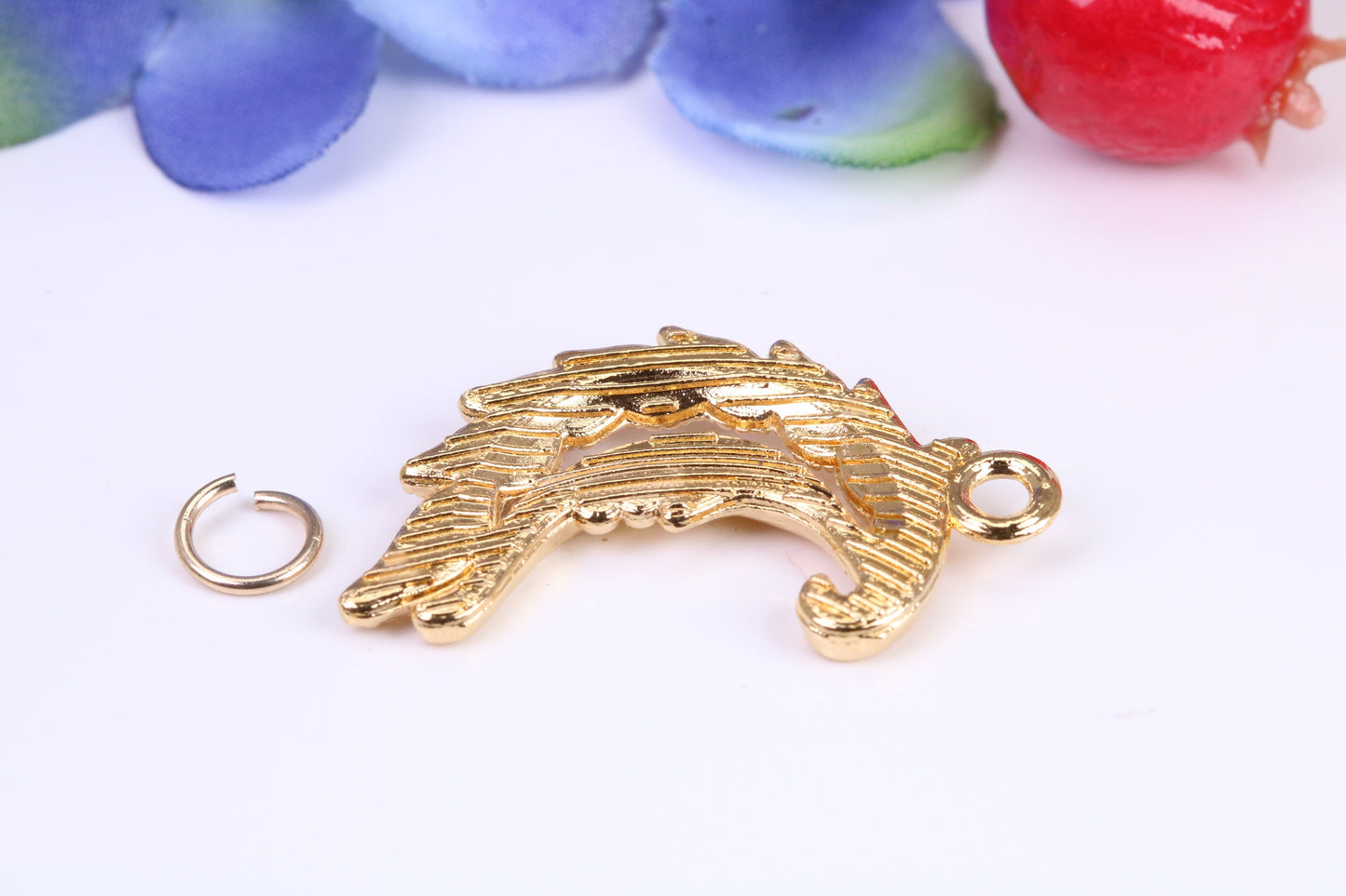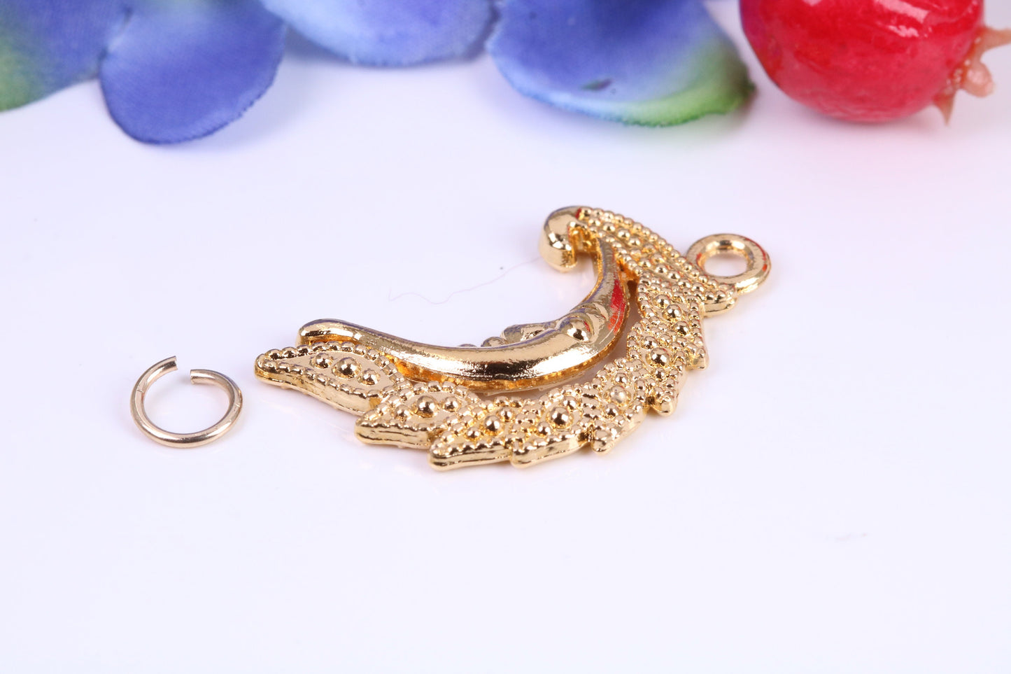 Floral Moon Charm, Traditional Charm, Made from Solid Cast Yellow Gold, British Hallmarked