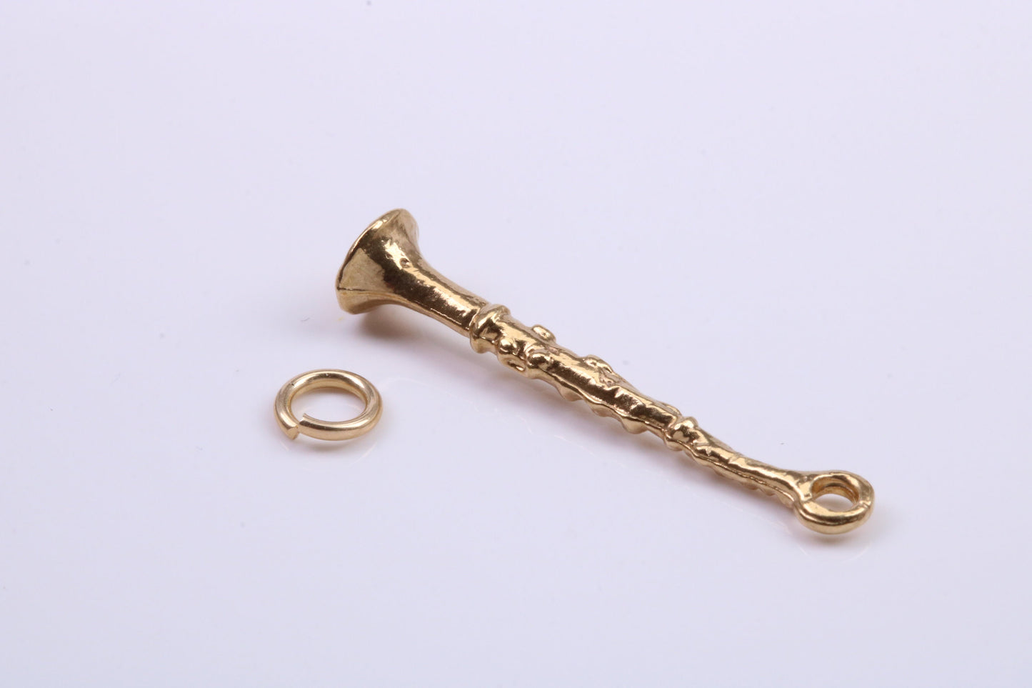 Flute Charm, Traditional Charm, Made from Solid 9ct Yellow Gold, British Hallmarked, Complete with Attachment Link