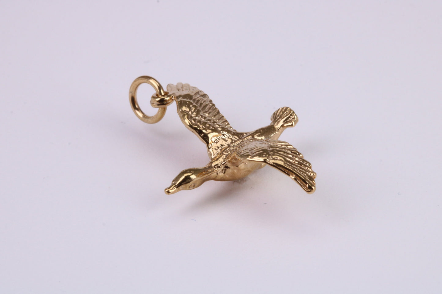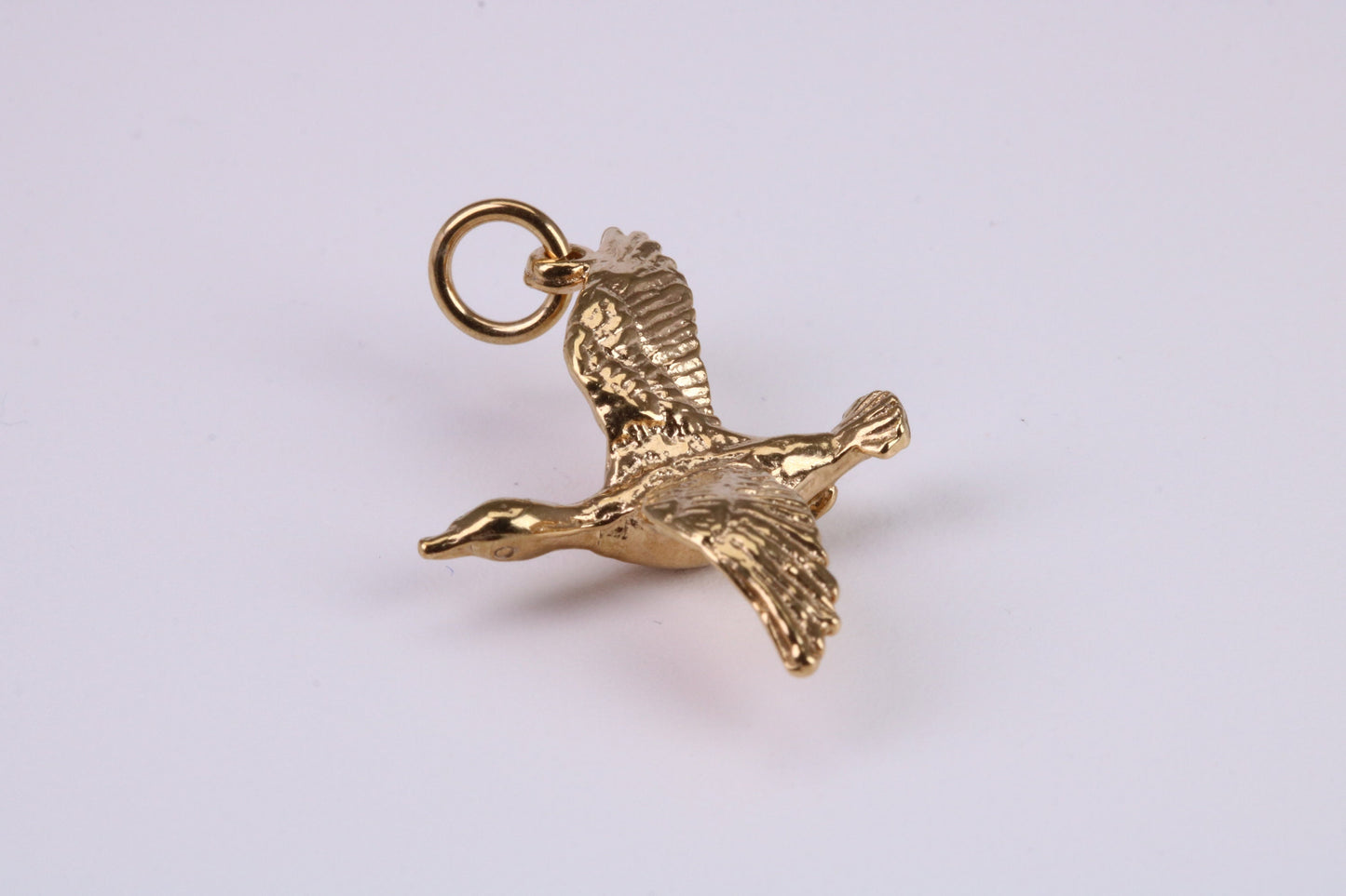 Flying Swan Charm, Traditional Charm, Made From Solid Yellow Gold with British Hallmark, Complete with Attachment Link