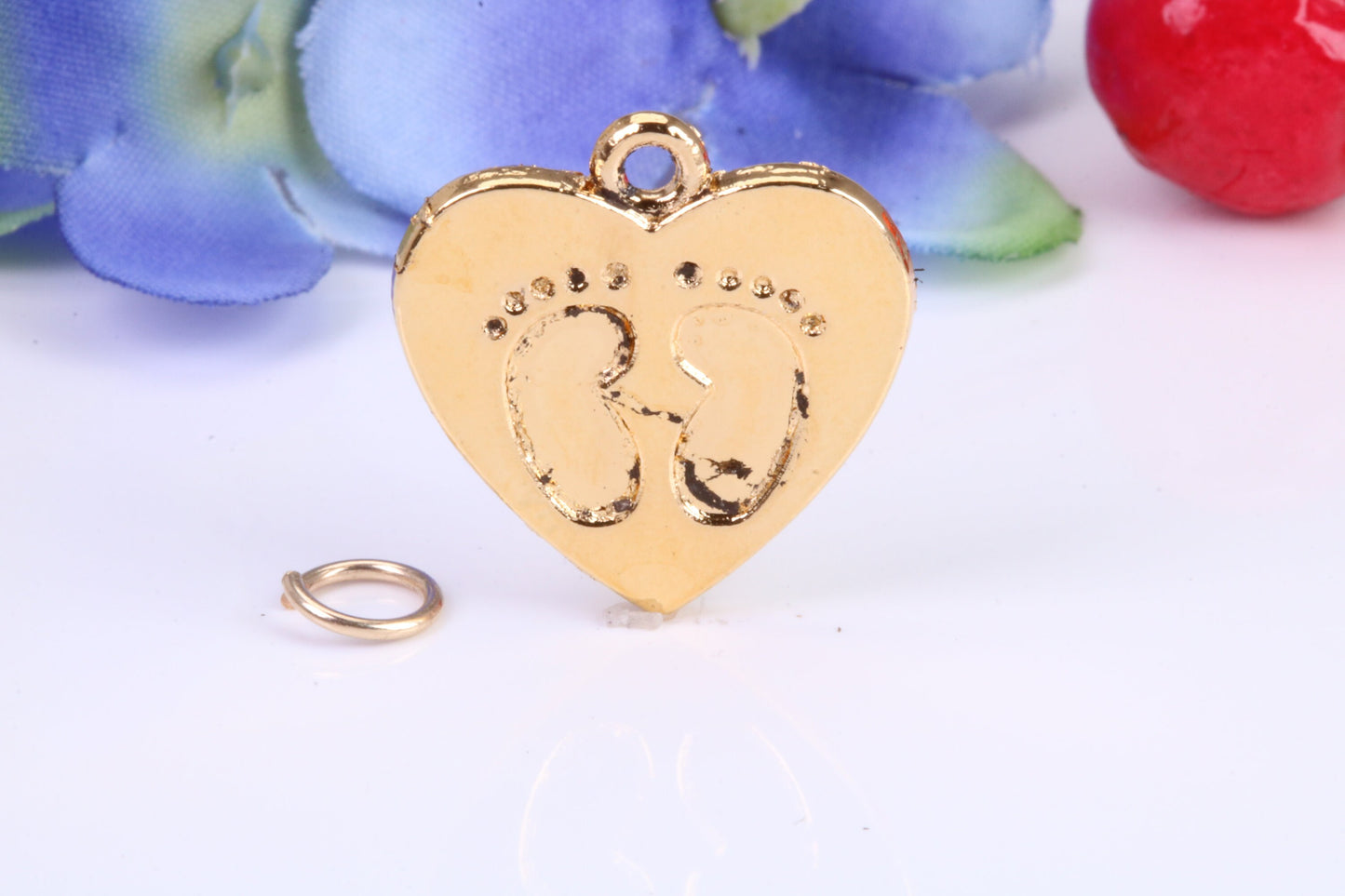 Foot Prints Charm, Traditional Charm, Made from Solid Cast Yellow Gold, British Hallmarked